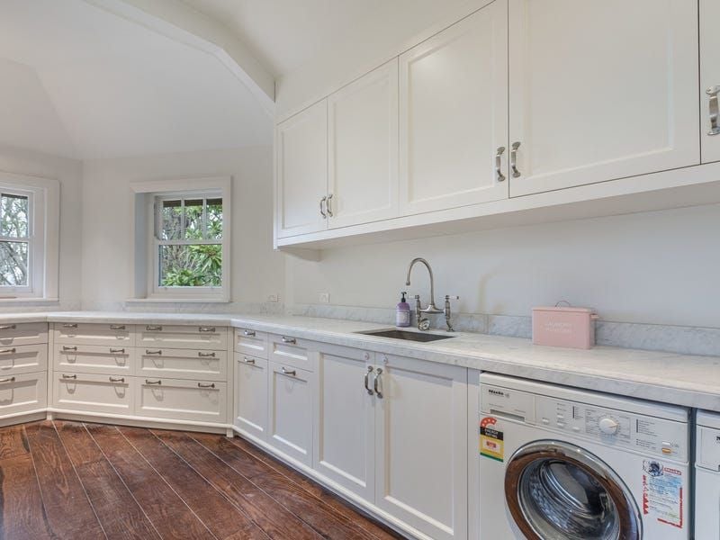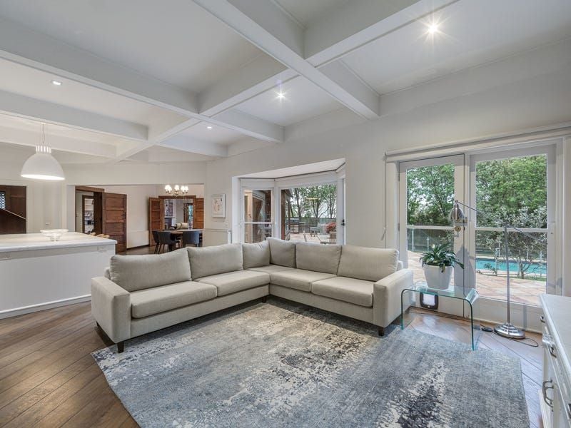 Modernized by renowned interior designer Stuart Rattle, this imposing residence includes superb formal and informal sitting and dining rooms, a fitted study and glamorous entertainers' kitchen with white stone benches and a French Lacanche cooker. The open-plan kitchen with adjoining butler's pantry, overlooks the dining and family room which open to the entertainment terrace, garden and pool.