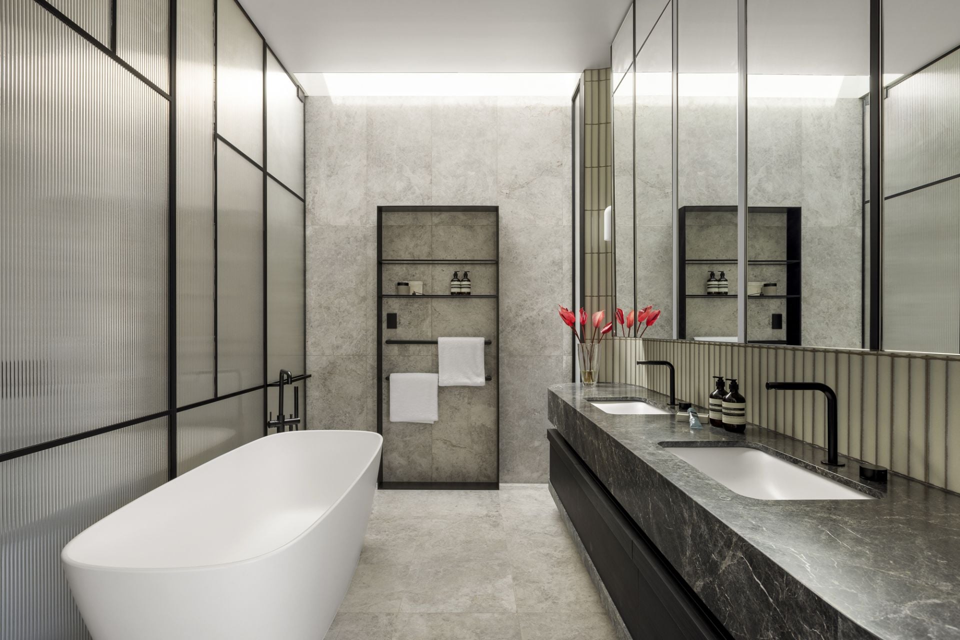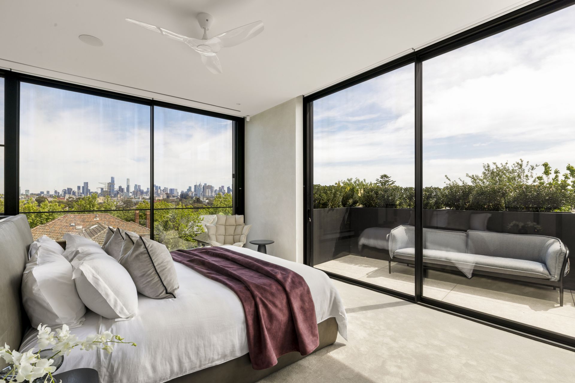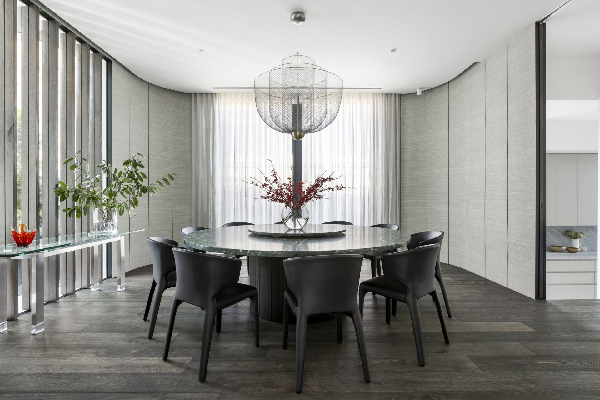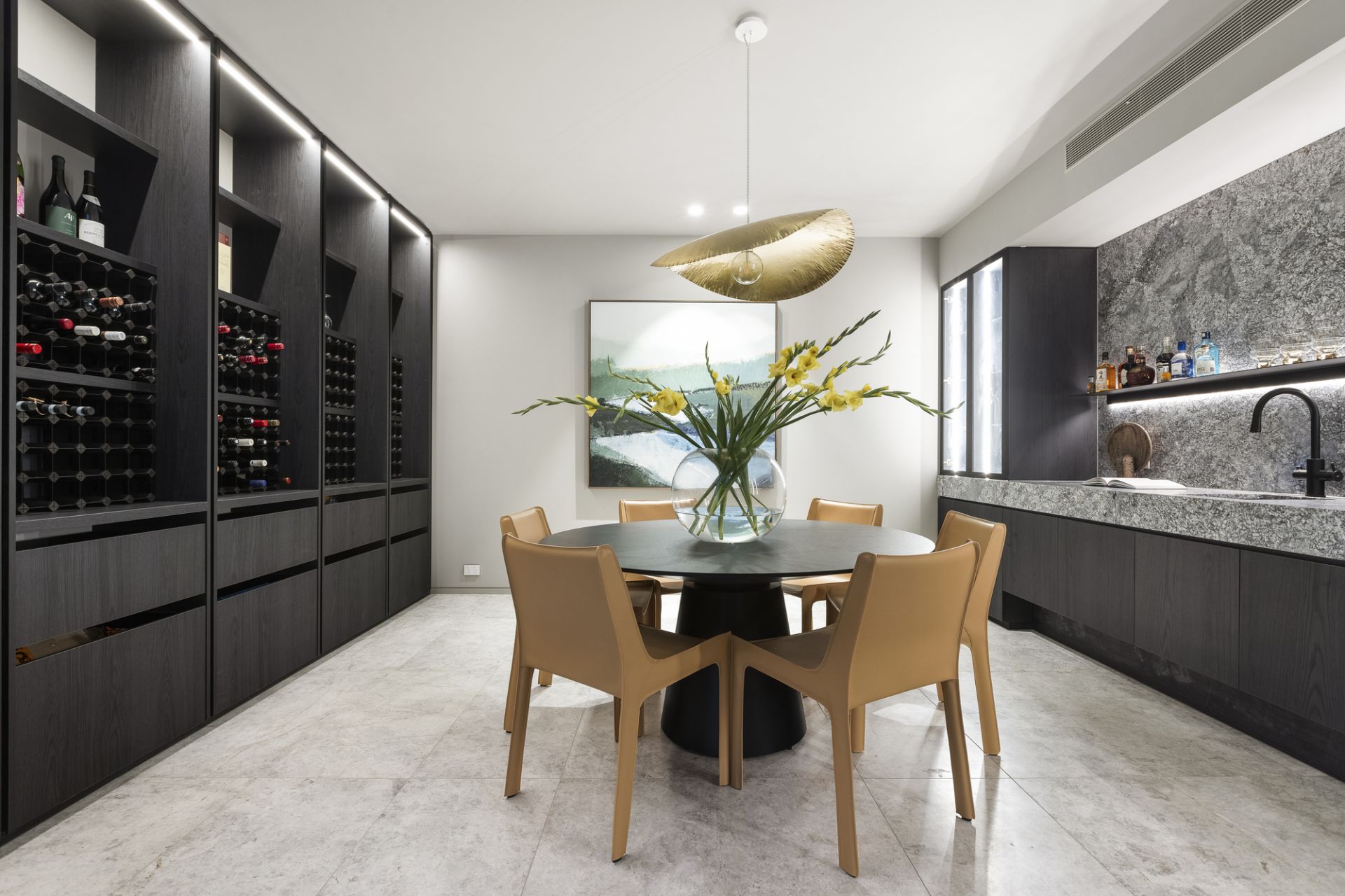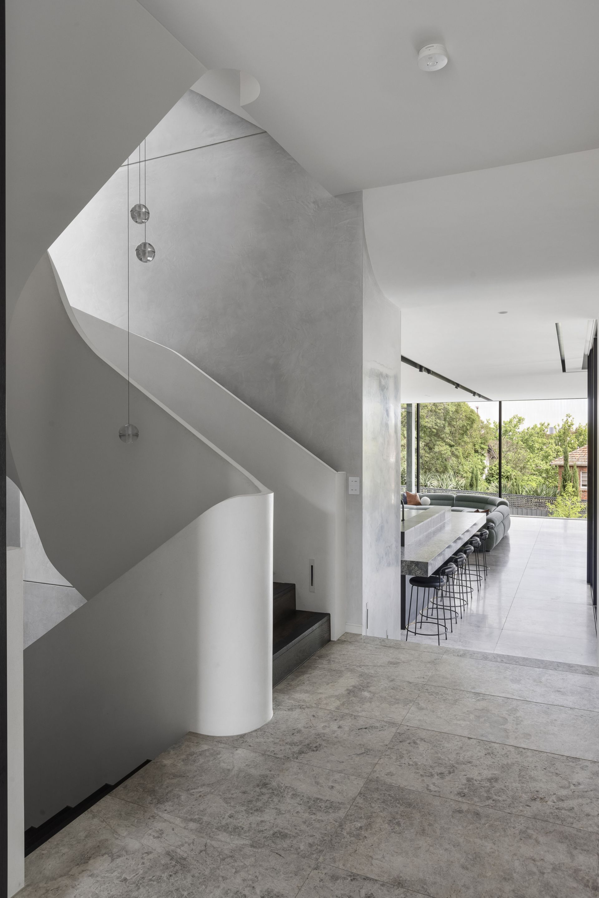 The interiors by SJB strike a gorgeous balance between strength and warmth, think soft textures, considered materials, and spaces that invite you to linger. A sweeping staircase spirals through the heart of the home, connecting four expansive levels: a rooftop bar with dazzling city views above; a cinema, gym, and wine cellar below.