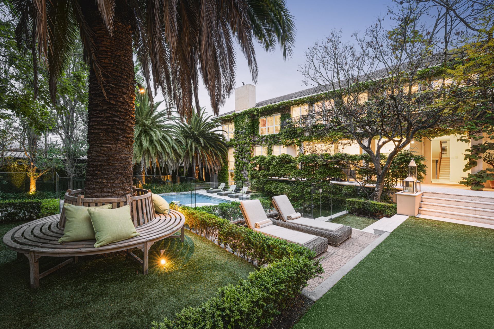 More French doors open on to the wraparound alfresco terrace overlooking the stunning gardens and heated pool, which is a resort-style private oasis that will delight family and friends.
