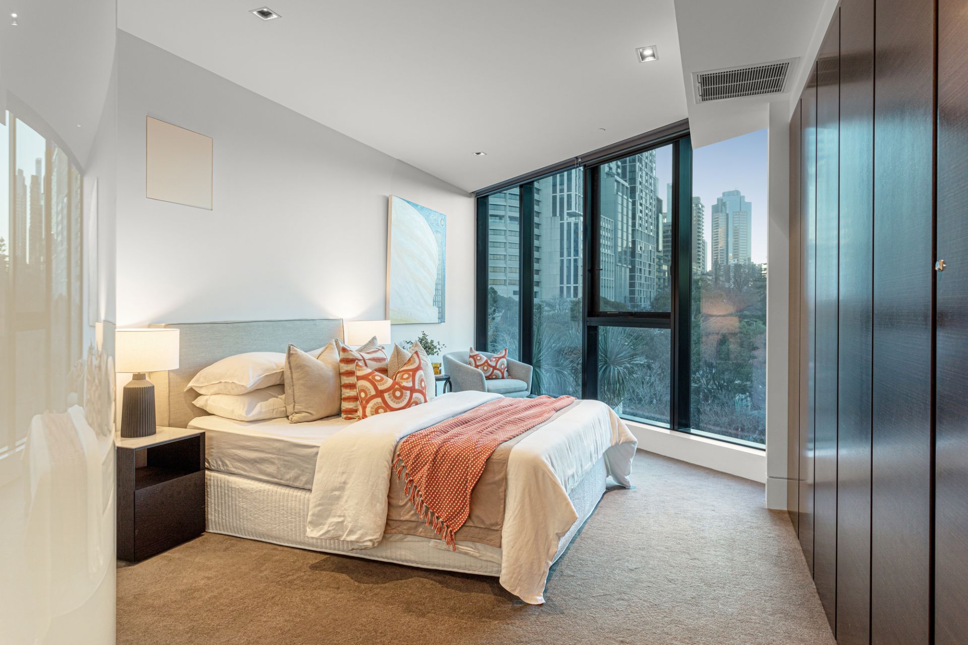 Step into a world of elegance with this exquisite three-bedroom apartment, situated in the prestigious "One East Melbourne" building. This luxurious residence offers the ultimate in privacy and exclusivity, with only three other apartments on your floor.