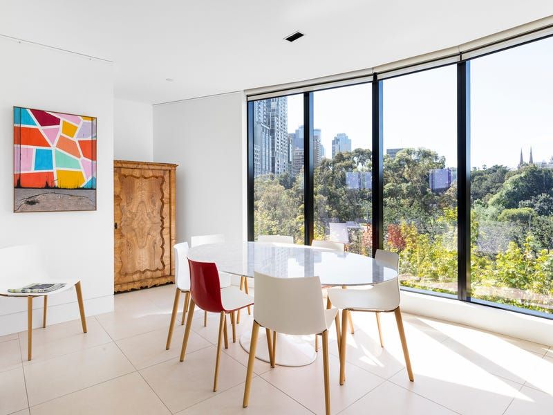 With uninterrupted and protected views across the tree tops to the north and east through floor to ceiling glass this beautifully renovated 6th floor apartment takes in the changing palette of the seasons: from Treasury and Fitzroy Gardens, Spring Street night lights, East Melbourne streetscape and the famous Melbourne Cricket Grounds.