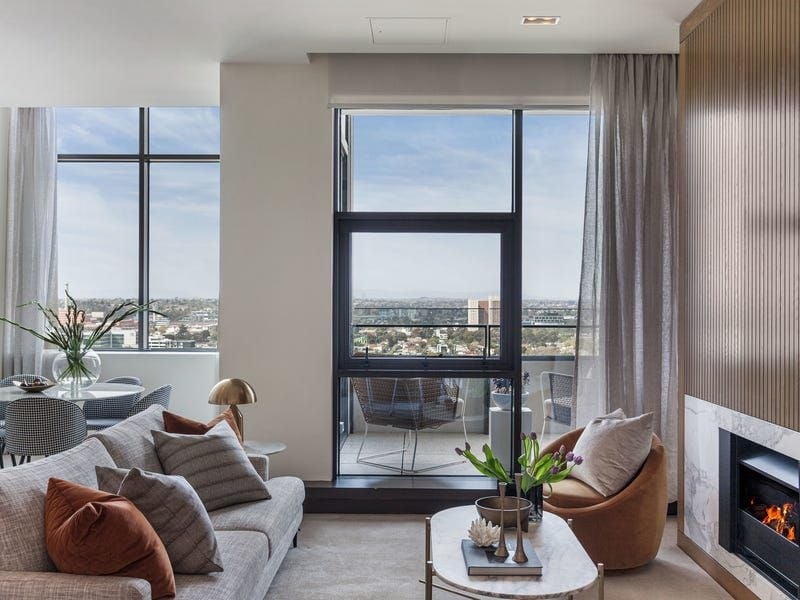 Entering the breathtaking tenth-floor apartment, the eye is immediately drawn to the mesmerising, 180-degree views of Melbourne that stretch as far as the Dandenong Ranges.