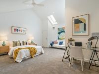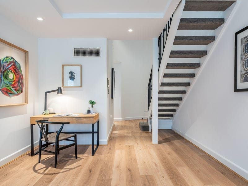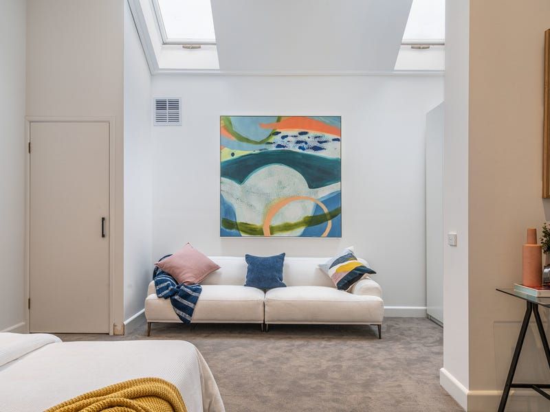 Other features include soaring ceilings, a central bathroom and plush carpets adorning all three bedrooms, a wood fireplace, air-conditioning, secure entry, a storage unit and secure parking for two cars, plus qualifying for a council on street permit.