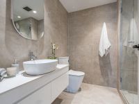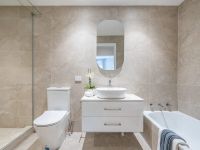The two bedrooms on the lower level enjoy a green outlook overlooking the peaceful, meticulously maintained gardens and fountain, synonymous with this exclusive development. The oversized main bedroom with a walk-in robe and luxury ensuite includes a large shower and bath, complete with contemporary tiles throughout.