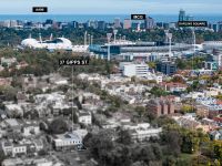 A gentle climb upstairs reveals the sun-drenched upper level where the main bedroom has a fitted walk-in wardrobe, sublime ensuite with dual vanities and views over Darling Gardens. Two more bedrooms, both with built in robes share a central bathroom with a bath and separate shower. The third bedroom has French doors to a private deck with broad views over the trees and rooftops of East Melbourne.