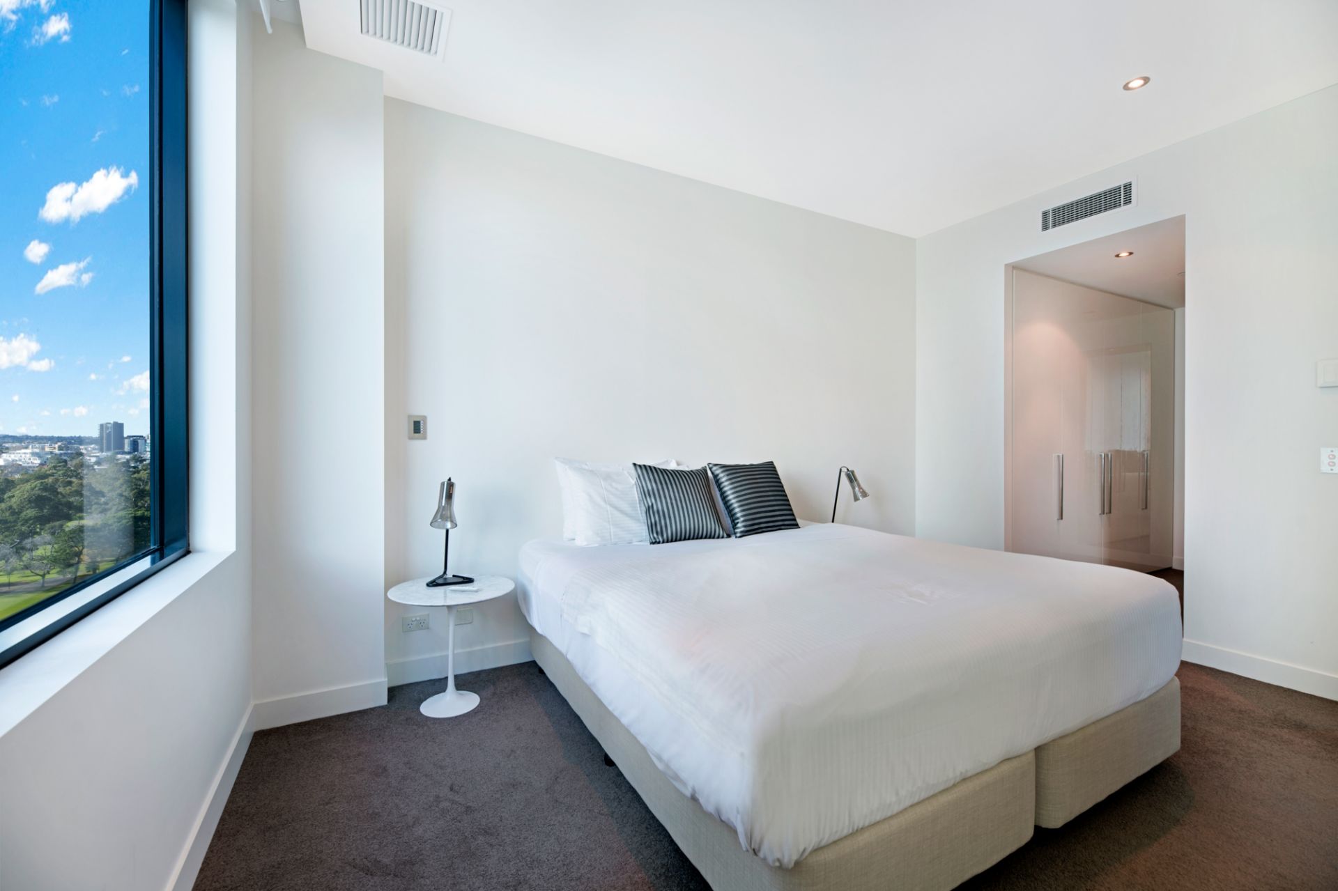Beautifully positioned on the 14th floor of prestigious 505 St Kilda Road with outstanding views looking down St Kilda Road Boulevard towards the City and directly ahead, Albert Park Lake and the Bay, is this luxurious, 2 bedroom, 2 bathroom plus study residence designed by renowned architect Fender Katsalidis.