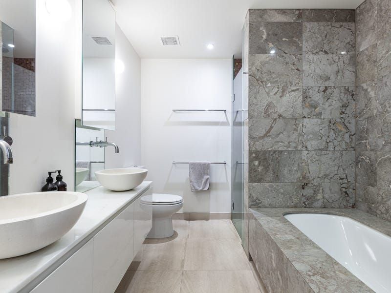 In the luxurious main bedroom, the walk-in wardrobe is accompanied by an opulent marble ensuite with twin vanities. The second bedroom, with built-in robes, boasts a marble and mosaic tiled ensuite. A powder room and full-sized laundry, heating, cooling, secure parking for two cars and a storage cage complete this stunning residence.