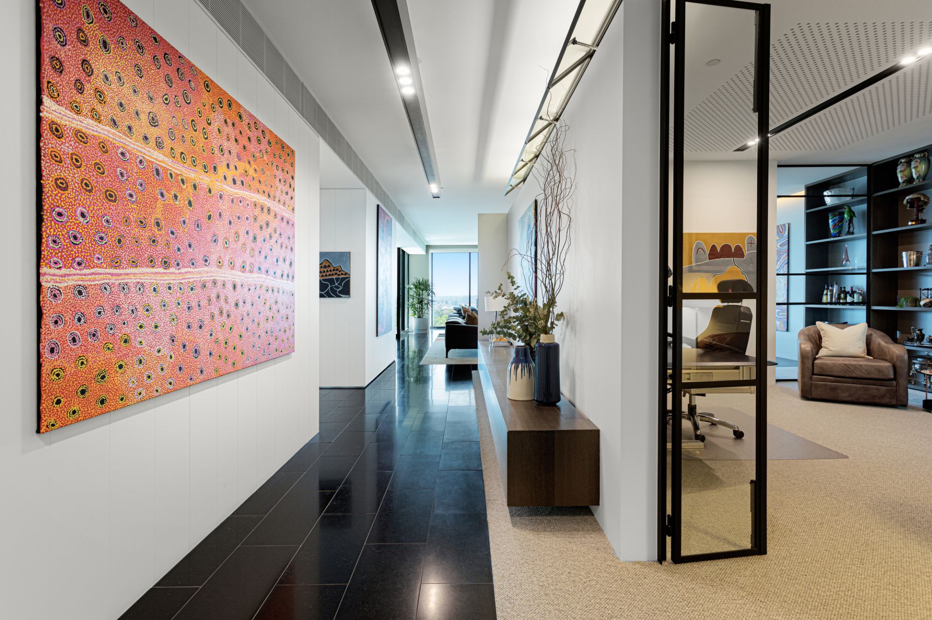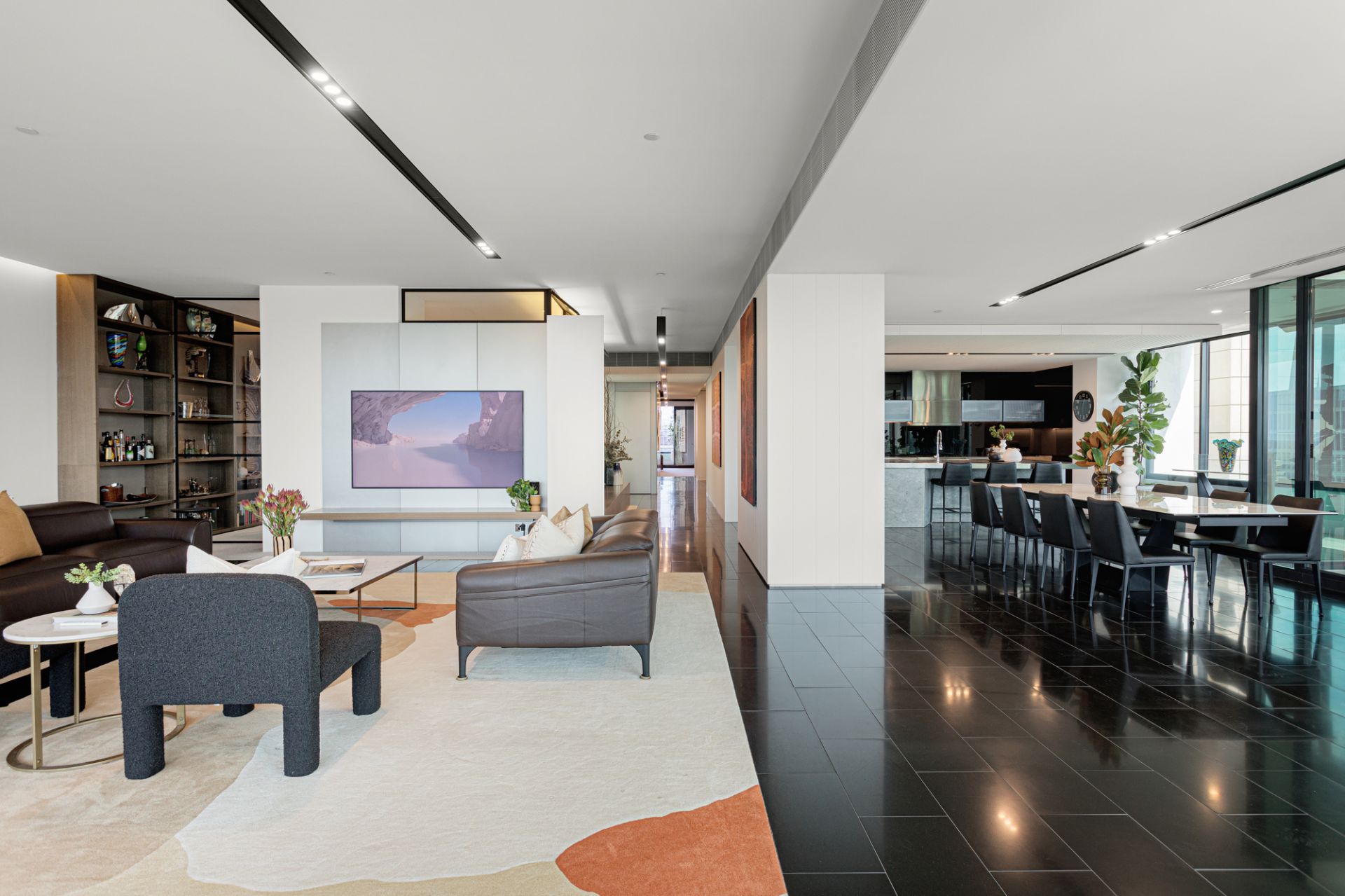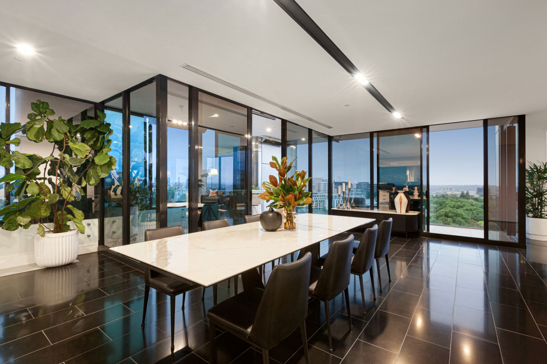 With floor-to-ceiling glass that floods the apartment with natural light, the flexible floor plan is perfect for both sophisticated entertaining and relaxed family living. The interiors seamlessly blend contemporary style with effortless functionality.