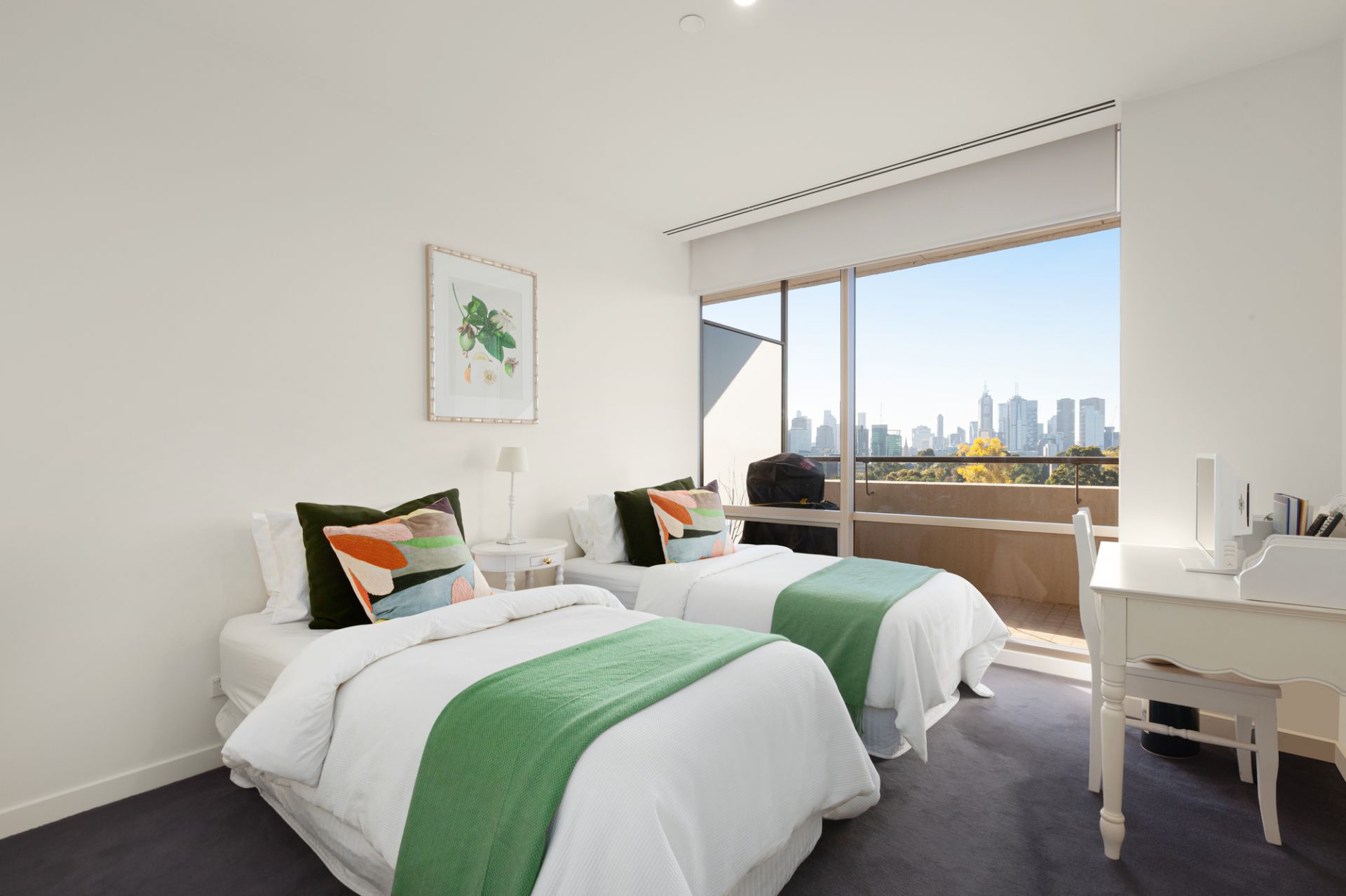 A breathtaking panorama spanning Melbourne’s most iconic landmarks highlights the rare allure of this superb eighth-floor apartment directly opposite the Royal Botanic Gardens in the tightly held ‘The Domain’ building. Sweeping uninterrupted from the Shrine and Government House to the glistening towers of the CBD, the Yarra and Docklands, some of the best views available on the city’s edge complement an outstanding lifestyle setting by Albert Park Lake, the new Anzac station and trams.