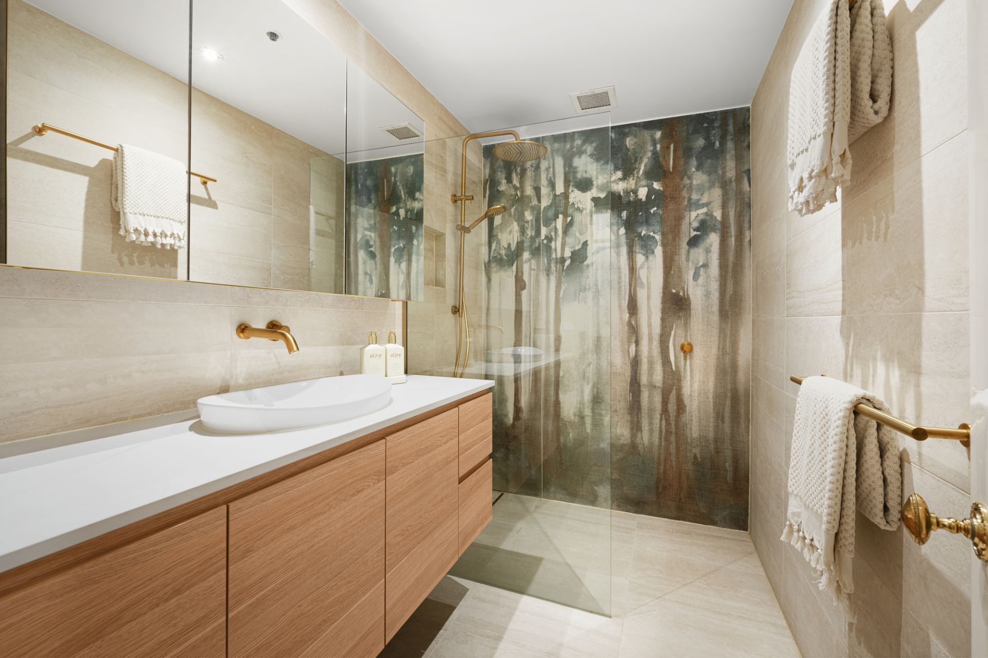 The well-appointed kitchen features marble benchtops, gas cooking and dishwasher, seamlessly blending style and functionality. The master suite is generously proportioned with extensive robes, ensuite and bath, while the second bedroom includes built-in robes, direct terrace access, and a statement main bathroom nearby. The third bedroom, also with terrace access, makes an ideal home office or guest bedroom.