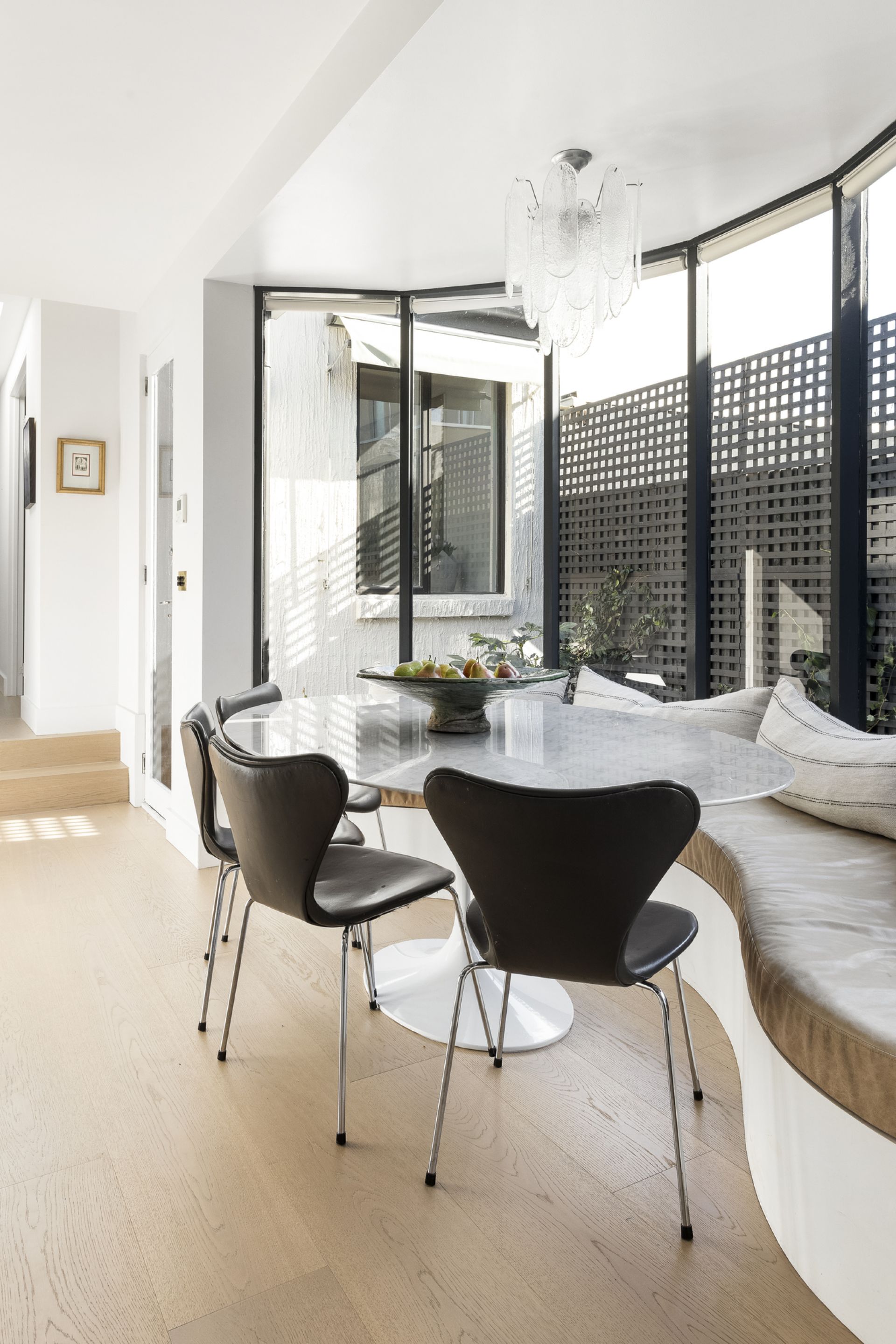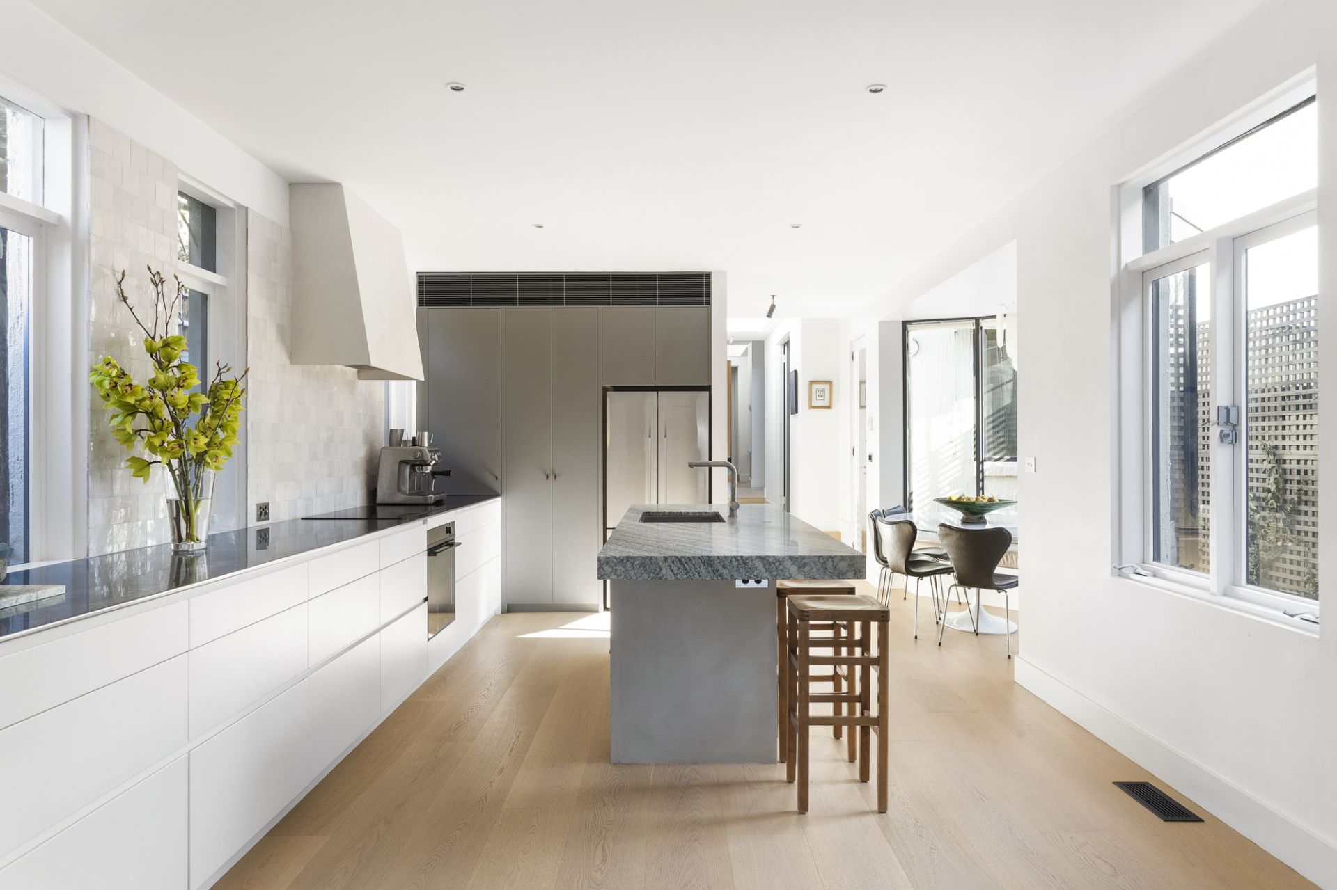 Its comprehensive renovation enlivening both indoor and outdoor domains, Manchurian pear trees and a sleek, Venetian-plaster prelude a sublime interior, with an ambiance of airy distinction achieved through in-vogue tones and textures, high ceilings, designer appointments, and all-day passive light. Accommodation enjoys separation from entertaining, with a skylit hallway connecting an impressive entrance and stunning rear section. Cleverly converted into a broad dining space, banquette seating gifts utility to brilliant bow windows, while an open wood fire to family area makes for memorable winter nights in the company of friends.