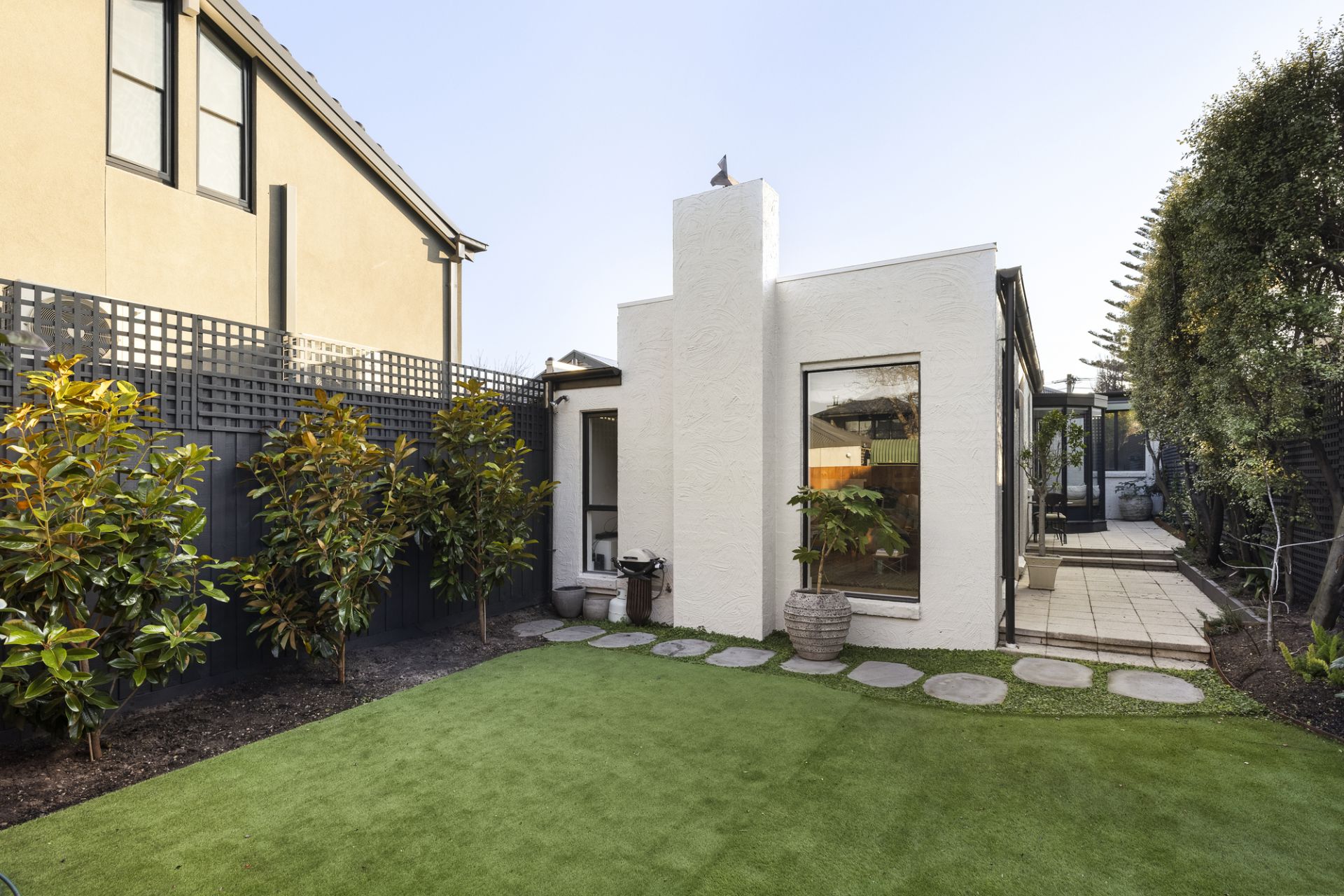 With Pyrenean Vert D'estours enriching a fitted bar and centrepiece island, a first-class kitchen comfortably caters for the home chef, with a profusion of soft-close cabinetry joined by a Fisher & Paykel oven, induction top, and double DishDrawer. Awash with sun, a low-maintenance backyard benefits from rear lane frontage, providing an abundance of space for energetic kids, car parking, and warm-weather hospitality.