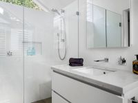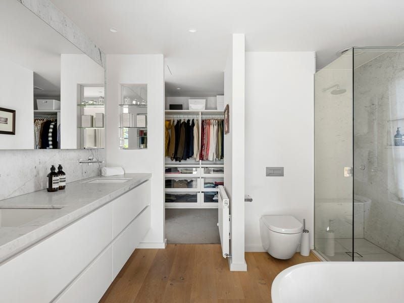 An elegant timber and steel staircase arrives at the first floor glass-wrapped retreat offering broad views across the trees and rooftops. Part study, part lounge, this retreat leads seamlessly to the main bedroom with garden aspects, a generous walk-in wardrobe and sublime ensuite. Two downstairs bedrooms, each with traditional fireplaces, feature built-in robes and doors to a "hidden" ensuite.