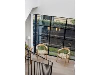 Interiors are underpinned by finishes of marble and timber. Craftsman-made steel-framed doors and windows allow light to penetrate all the living areas. At the end of the traditional hall, past a sitting nook, doors open to the north facing kitchen, dining and living room.