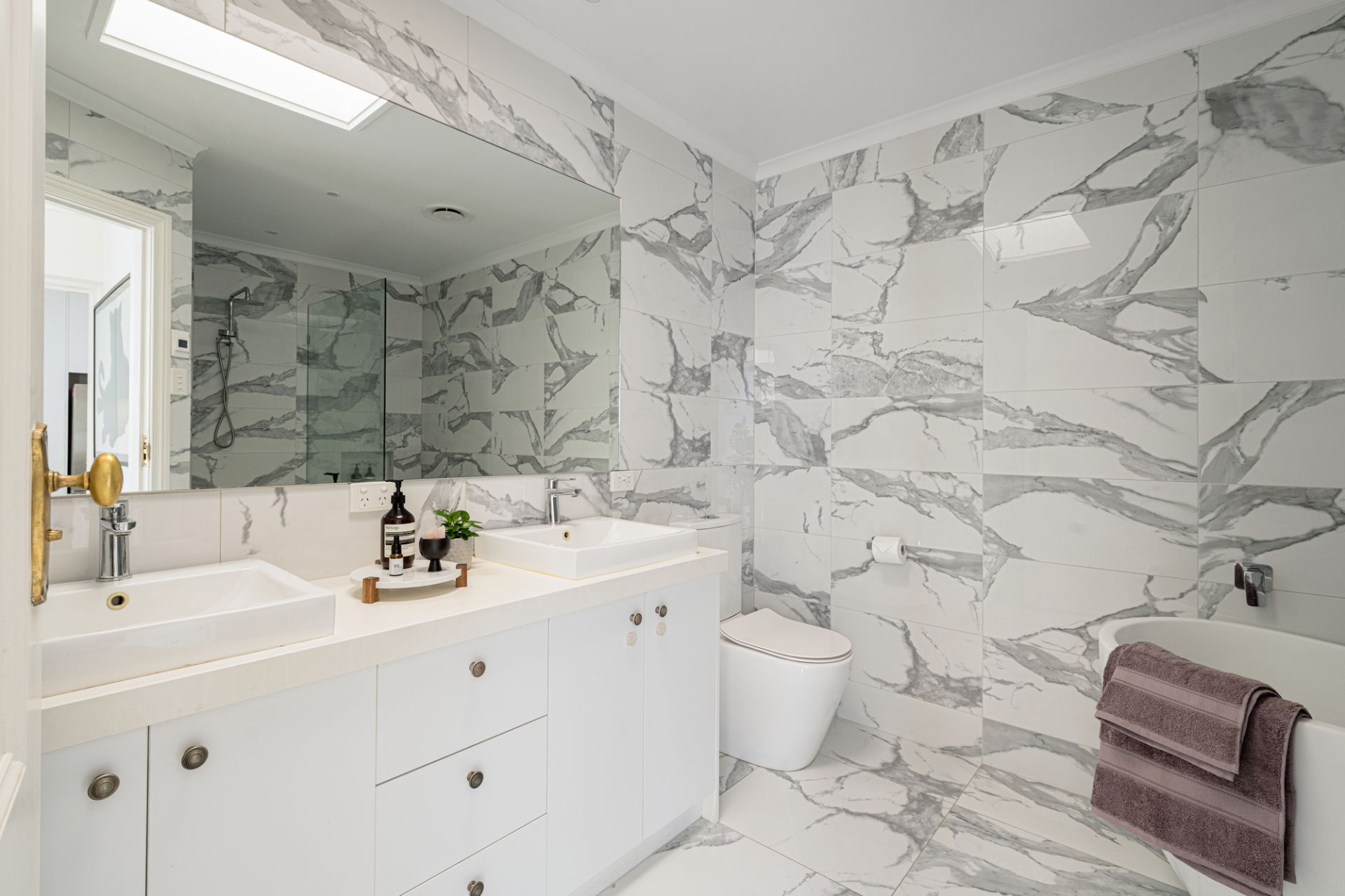 A flowing floorplan places the newly renovated kitchen at the heart of the home and pairs Calacatta marble benchtops with premium appliances including a Smeg oven and five burner gas hob and extensive cabinetry. An adjacent dining area and laundry facilities increase the practical amenity of this sunny space.