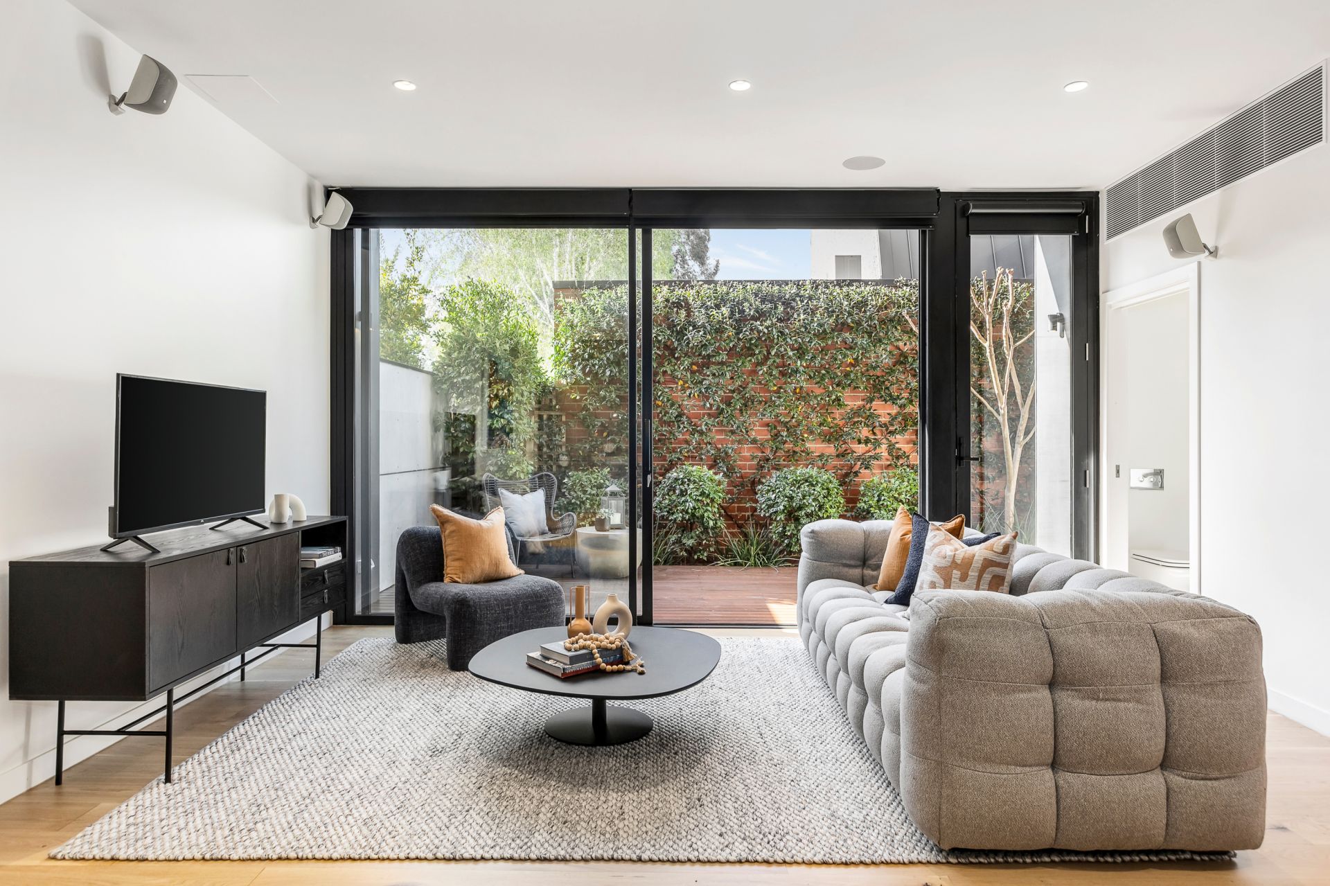 Experience luxurious living in this stunning contemporary townhouse-style residence, designed by Object Subject Architects and featuring Jack Merlo landscaped gardens accents, quietly set at the rear.