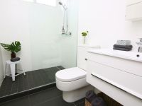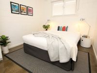 The light-filled, open-plan living and dining area features polished concrete flooring, while the designer kitchen boasts stone benchtops and stainless-steel appliances. The master bedroom is a serene retreat with an ensuite bathroom and spacious walk-in shower.