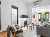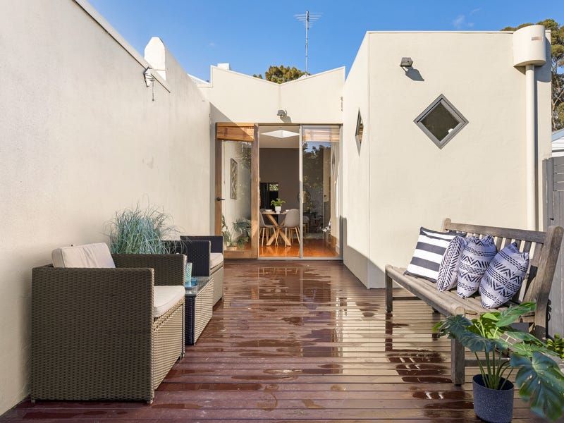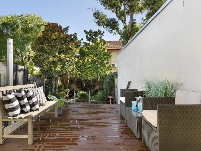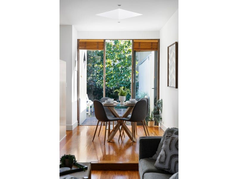Stunning solid timber floorboards and high ceilings enhance a previously renovated interior comprising an arched hallway, two great-sized bedrooms and an internal light court. An exceedingly comfortable living room extends to a sky-lit dining area and a granite-topped kitchen with stainless-steel appliances. The living/dining room opens to an elevated alfresco timber deck overlooking a sunny and secluded landscaped garden and provides excellent opportunity for indoor-outdoor entertaining.