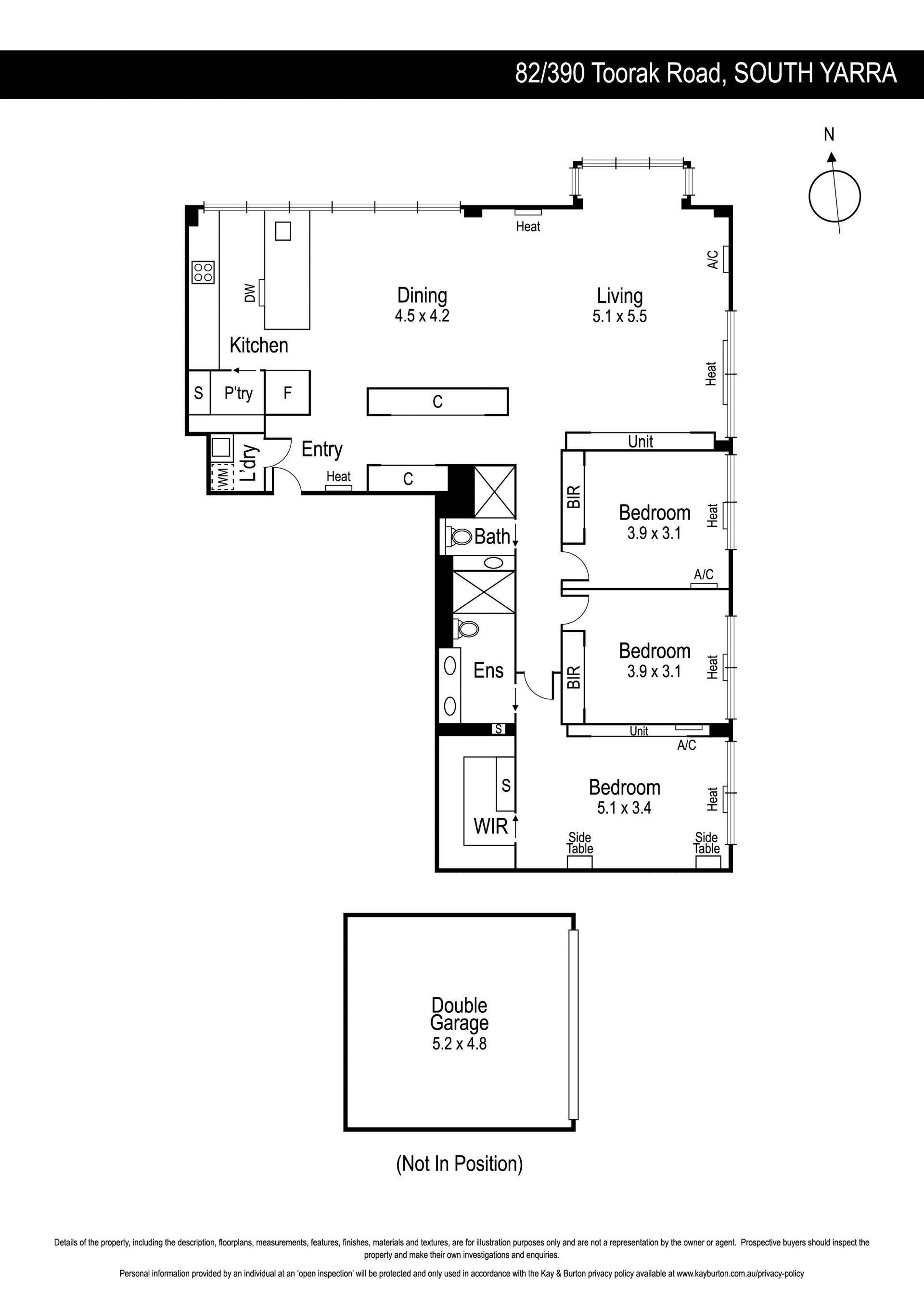 The marble kitchen is prestige appointed with a suite of Siemens appliances inclusive of an integrated dishwasher. Two bedrooms with built-in robes and modern central bathroom complement a luxurious main bedroom suite with a fully-tiled contemporary ensuite, walk-in robe, split system heating/cooling and electric blinds.