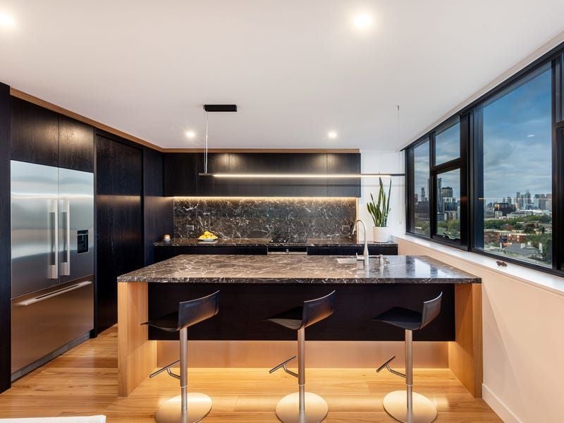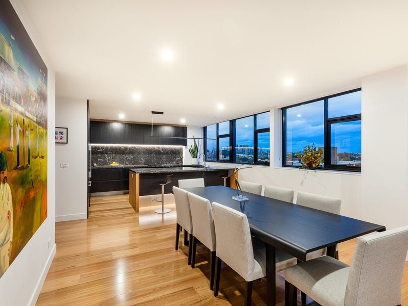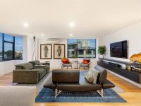 Beautifully scaled and appointed, the flowing floorplan offers a north-facing dining room where you can dine against a backdrop of city lights and spacious living room with north and east aspects, split system air conditioning and floating joinery.