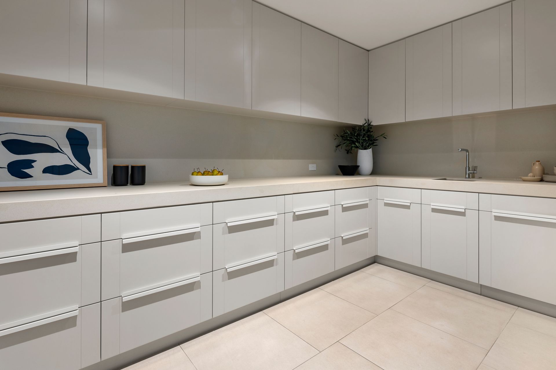 The spacious living and dining areas feature elegant timber flooring and an abundance of natural light, opening out to two expansive terraces, perfect for enjoying the outdoors. The gourmet kitchen is a chef's dream, featuring premium Gaggenau appliances, a Liebherr built-in fridge / freezer, a gas cooktop, and a large butler's pantry with a second dishwasher, and loads of storage.