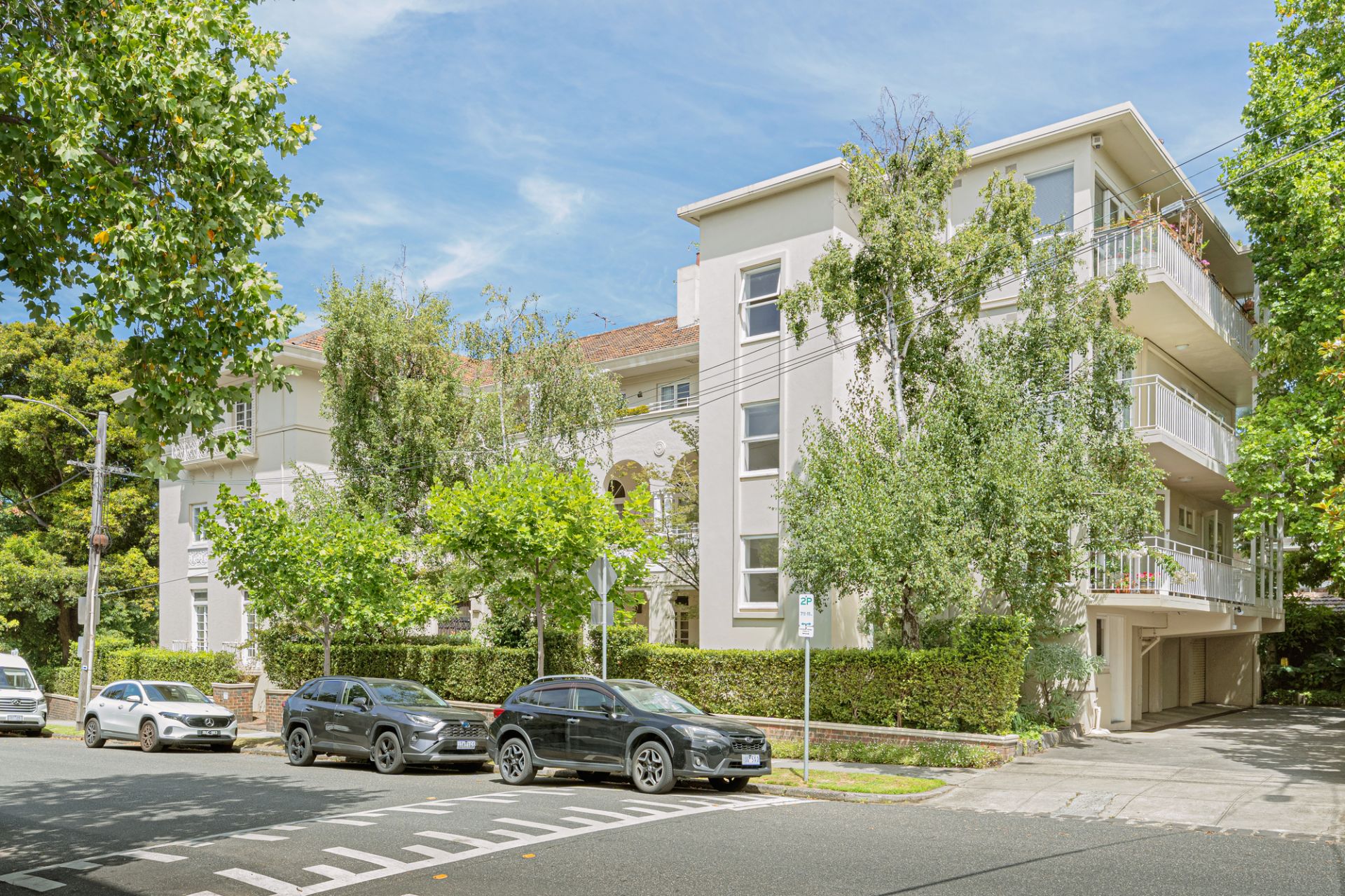 Bookended by Fawkner Park and the Botanic Gardens is this light filled elevated 1930’s residence designed by renowned architect Edward Billson. Highlighted by a large north facing living area with leafy aspects and adjoining 11 metre private terrace. Further complimented by a smart updated kitchen with stone bench tops, bedroom with BIR’s, central bathroom, heating/cooling, security entrance and easy access to a private lock-up garage with extensive storage. Only moments from Domain & Toorak Road dining and shopping, the soon to be open ANZAC station and trams.