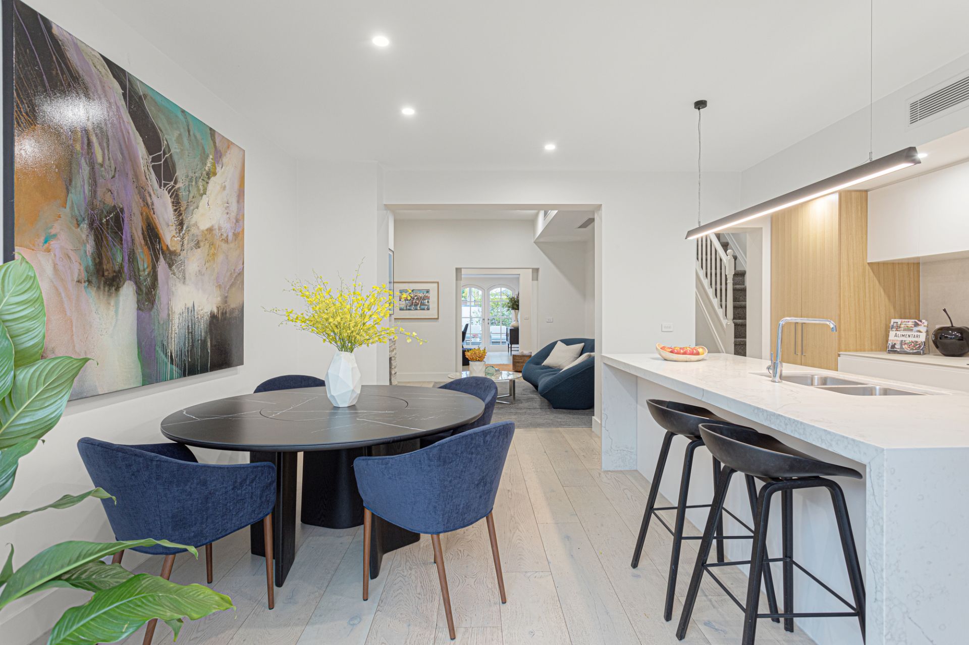 Abundantly light, the gourmet kitchen with marble benches, premium Swiss V-Zug appliances, and integrated fridge/freezer overlooks the dining zone with courtyard access. The laundry, butler's pantry and powder room are conveniently located at one end of the kitchen.