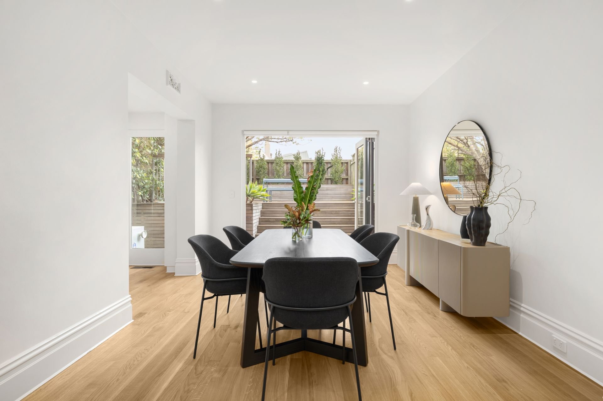 Behind the solid brick house's timeless period facade, an inviting grand hallway introduces the generous proportions and stylish interiors that are the hallmarks of this immaculate home. Set over three airy levels, the ground floor features a serene formal sitting room or dining area with a handsome original fireplace that flows through to a more informal living area with French doors opening on to a sunny, private deck perfect for alfresco entertaining.