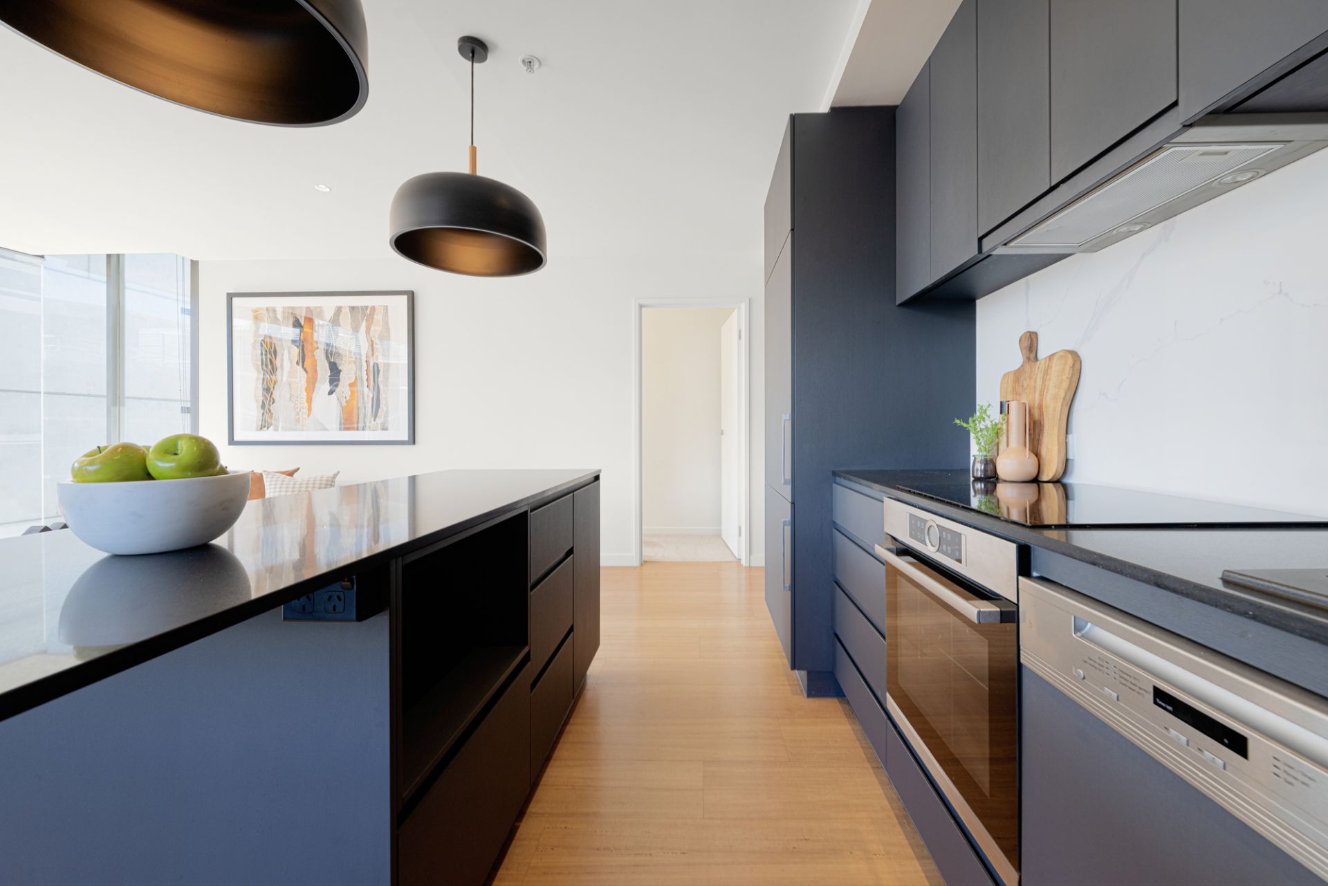 This bright apartment offers video security entry, spacious open plan living/dining room with floor to ceiling windows, balcony, smart kitchen, 2 bedrooms with BIR's (main with en-suite and WIR’s), study area, ample storage, laundry cupboard, heating/cooling, secure basement car and gymnasium.