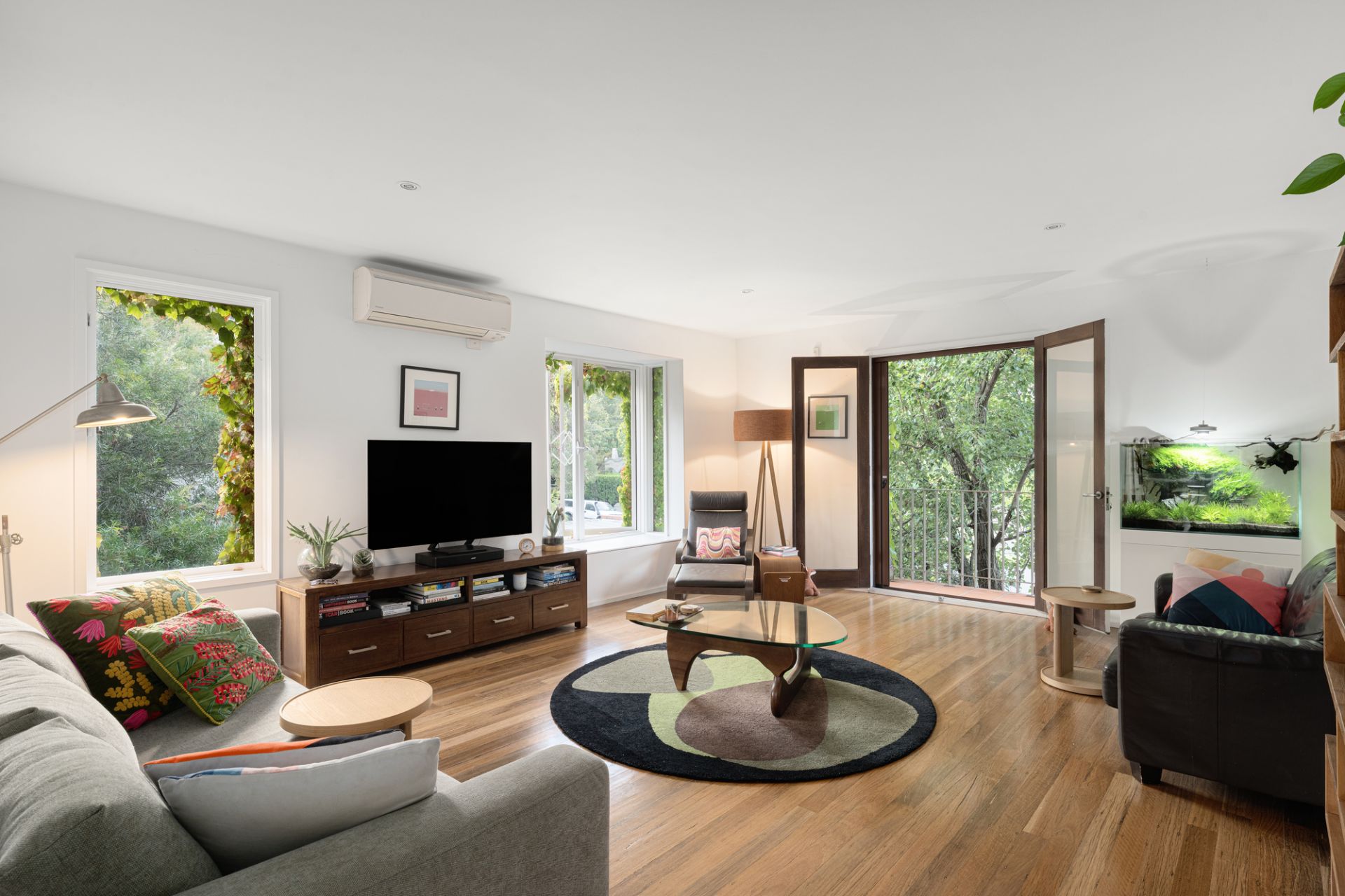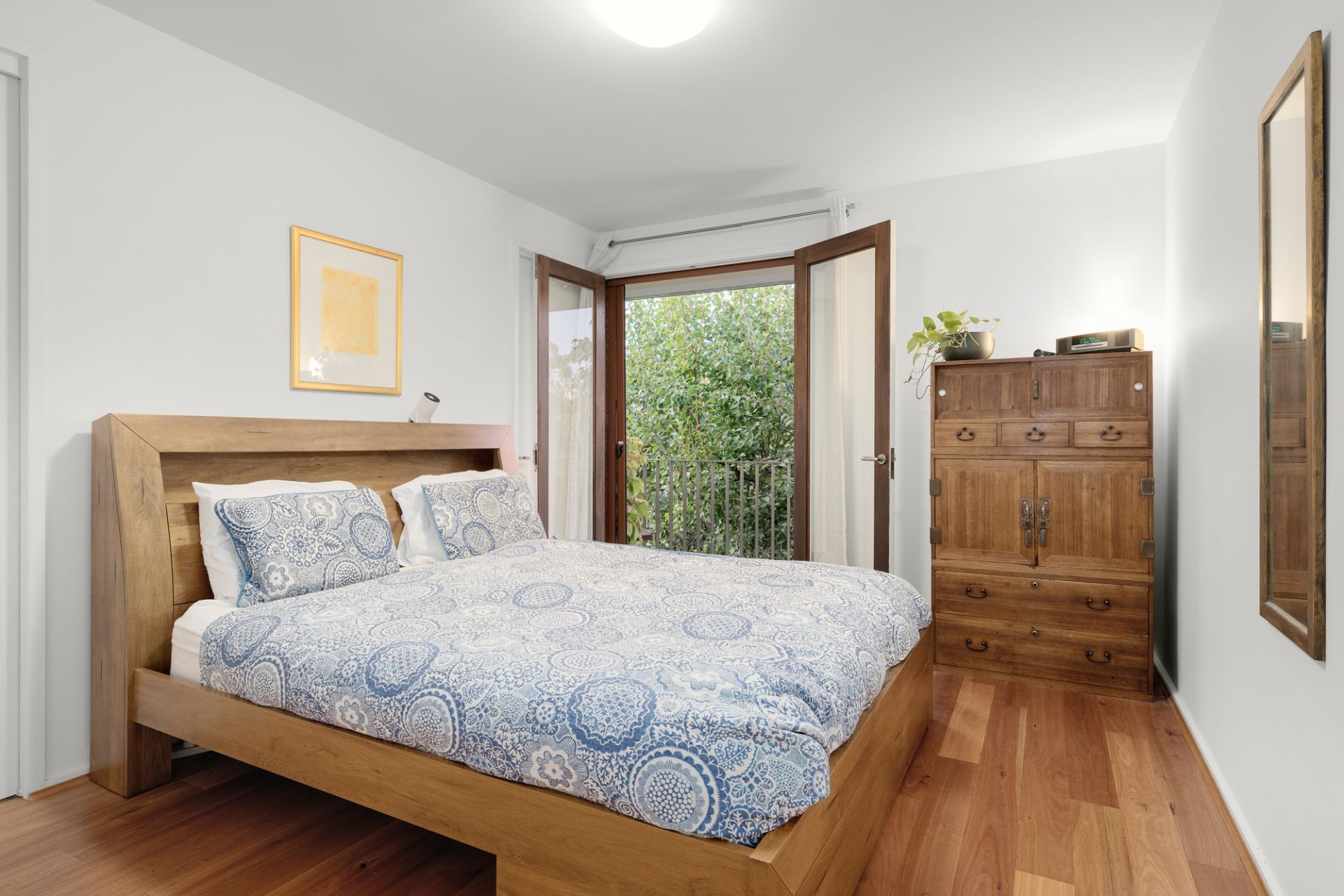 An eastern balcony is magnificent for morning coffees among foliage, while living, dining, and Smeg/Asko kitchen areas comfortably cater for gatherings large and small. A substantial, wonderfully private terrace hits its stride in warmer months, perfect for a blue-sky barbecue or social drink glancing at Silver Birches and sunset hues. A haven of space, substance, and serenity with verdant outlooks available from every corner, features include high ceilings, recycled hardwood floors, skylights and timber vanities to top-level bathrooms, reverse-cycle heating and cooling, a European laundry, double garage facing Felix Lane, and delightful bay breeze through western windows.