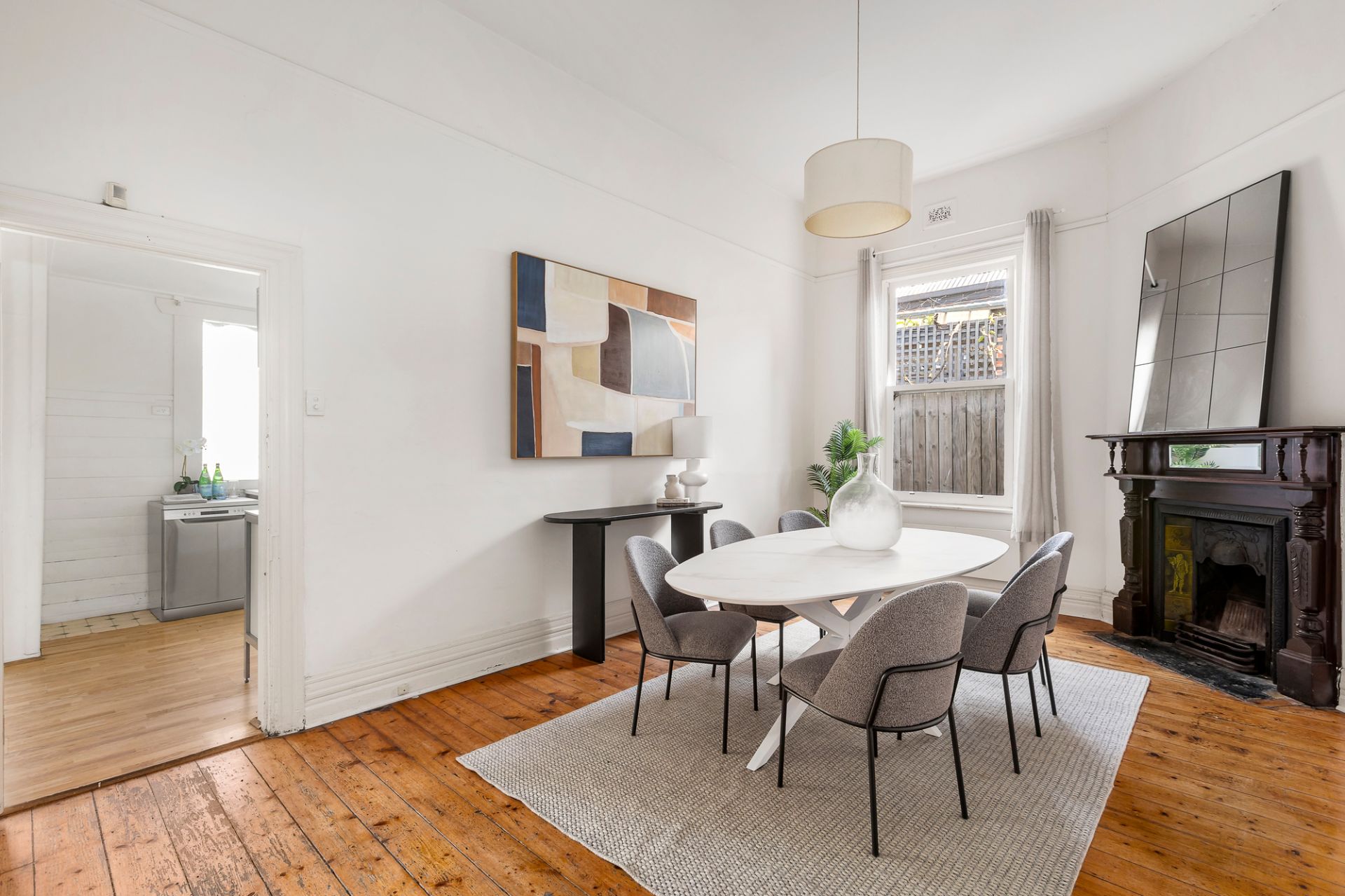 Rich in period appeal, the home features glossy Baltic pine floors, high ceilings, ornate fireplaces and decorative ceiling roses. It offers three bedrooms, with the flexibility for one to serve as an additional living space, a spacious lounge and separate dining room (both with original fireplaces), family bathroom, full laundry, central kitchen, gas cooktop and storage.