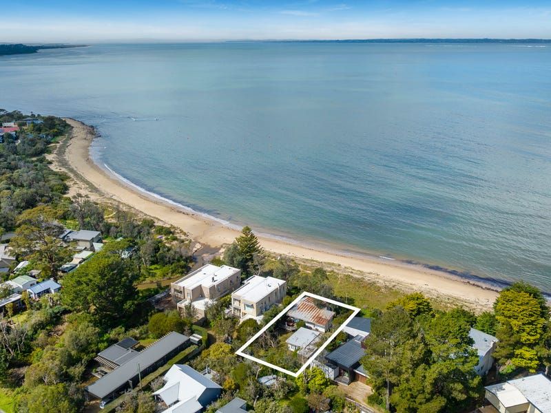 In its original 50s condition, with plenty of love needed to bring it back to its prime, the home's position is now the winning ingredient to a lavish Peninsula lifestyle, where you can dream big on 633sqm (approx.) of prime beachfront land (STCA). An increasingly rare opportunity to buy into a tightly held, sleepy coastal pocket where you can watch the weather change over the bay, the sun hit the shores of Phillip Island, and the dolphins play all from your back porch. With never-to-be-built-out views over the water to the Nobbies, Seal Rock and West Head in Flinders - there's no shortage of inspiration here.