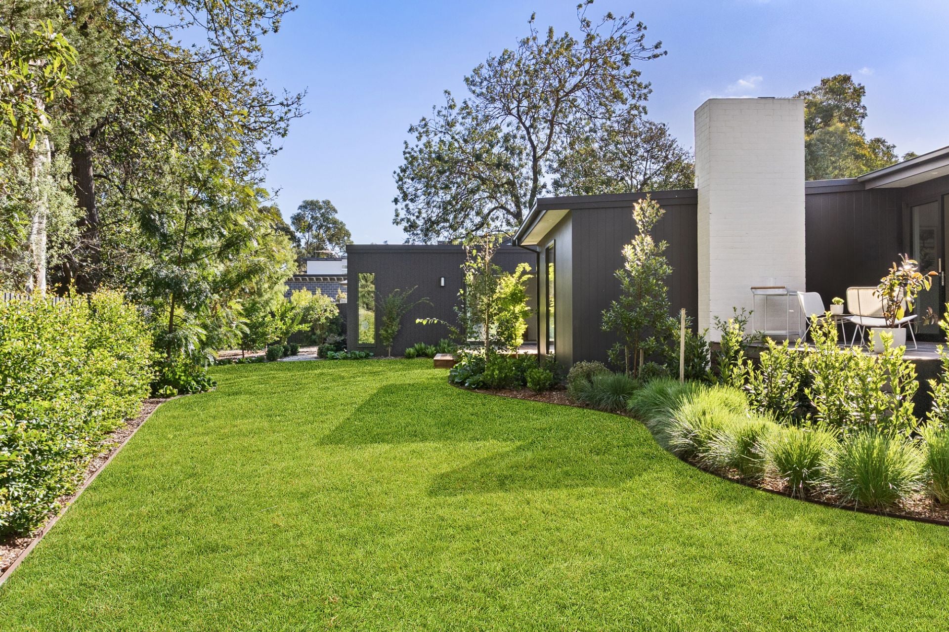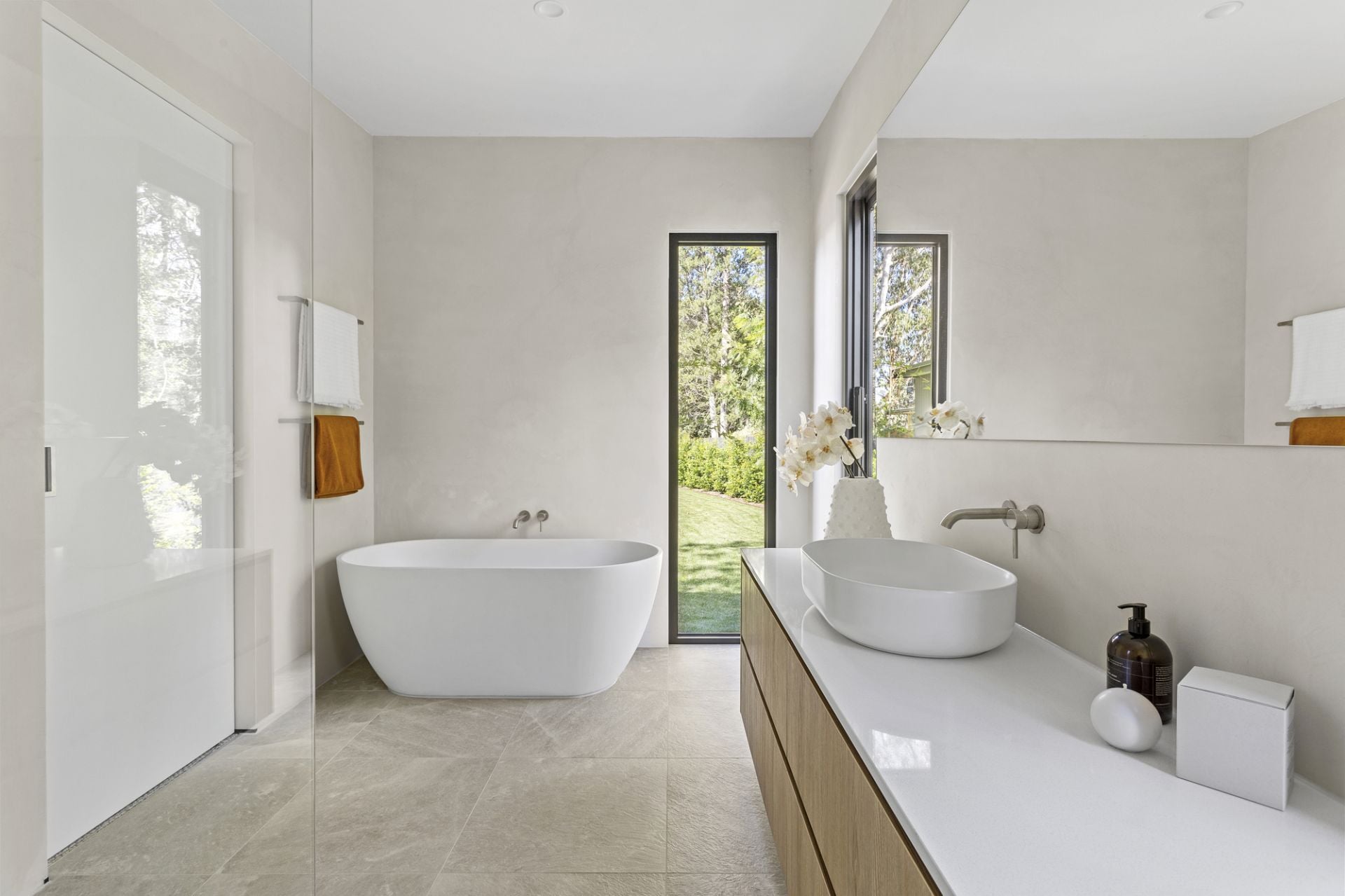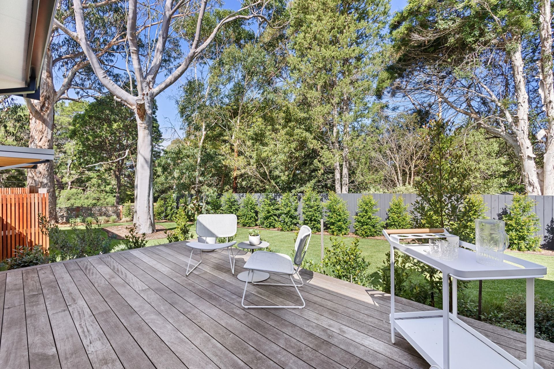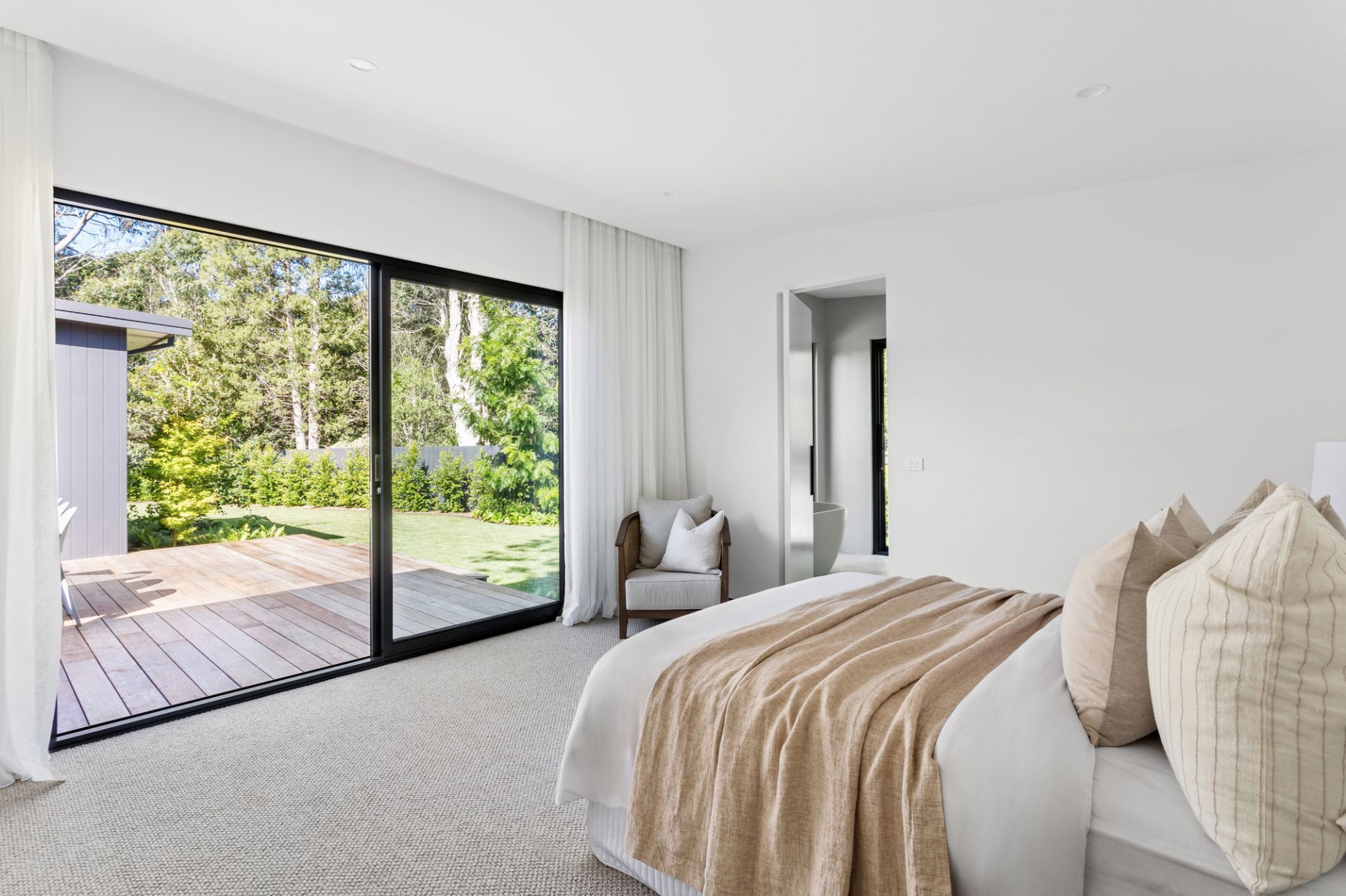 With green outlooks in every direction and seamless indoor-outdoor living, the home is impeccably tied to the surroundings—its gardens, a masterwork by horticulturist Teena Crawford, offer beauty, privacy, and family-friendly tranquillity.