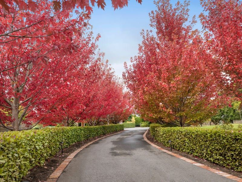 Lined by stunning Flame Maples, the asphalt driveway slowly reveals the modern home beyond, where a trifecta of distinctive living and dining areas are underpinned by soaring ceilings, elegant floor coverings and ambient wood-fire heaters. A host of integrated Miele appliances feature in a chef's own kitchen, perfecting a socially-integrated workspace with a practical blend of stainless steel and stone surfaces.