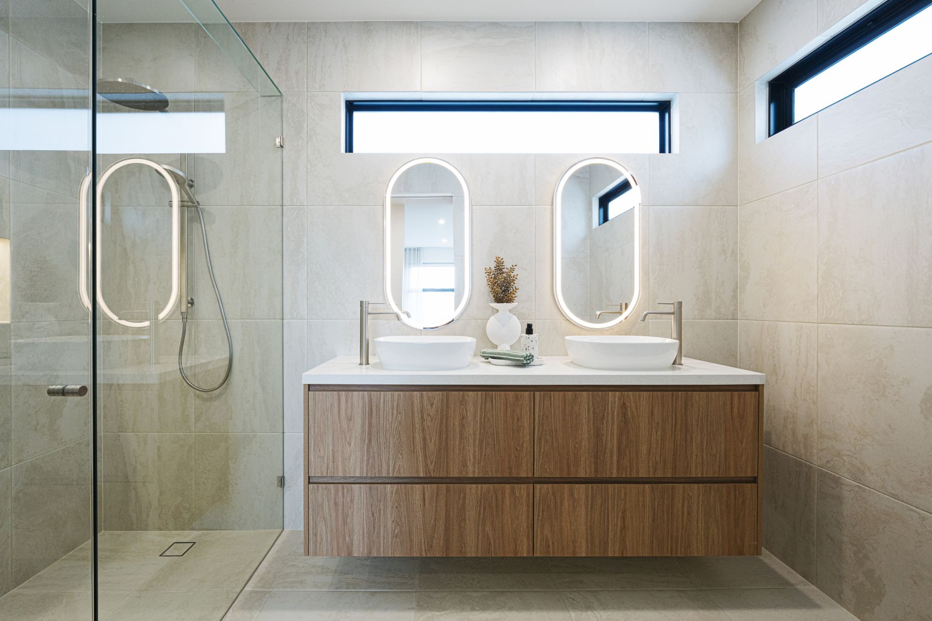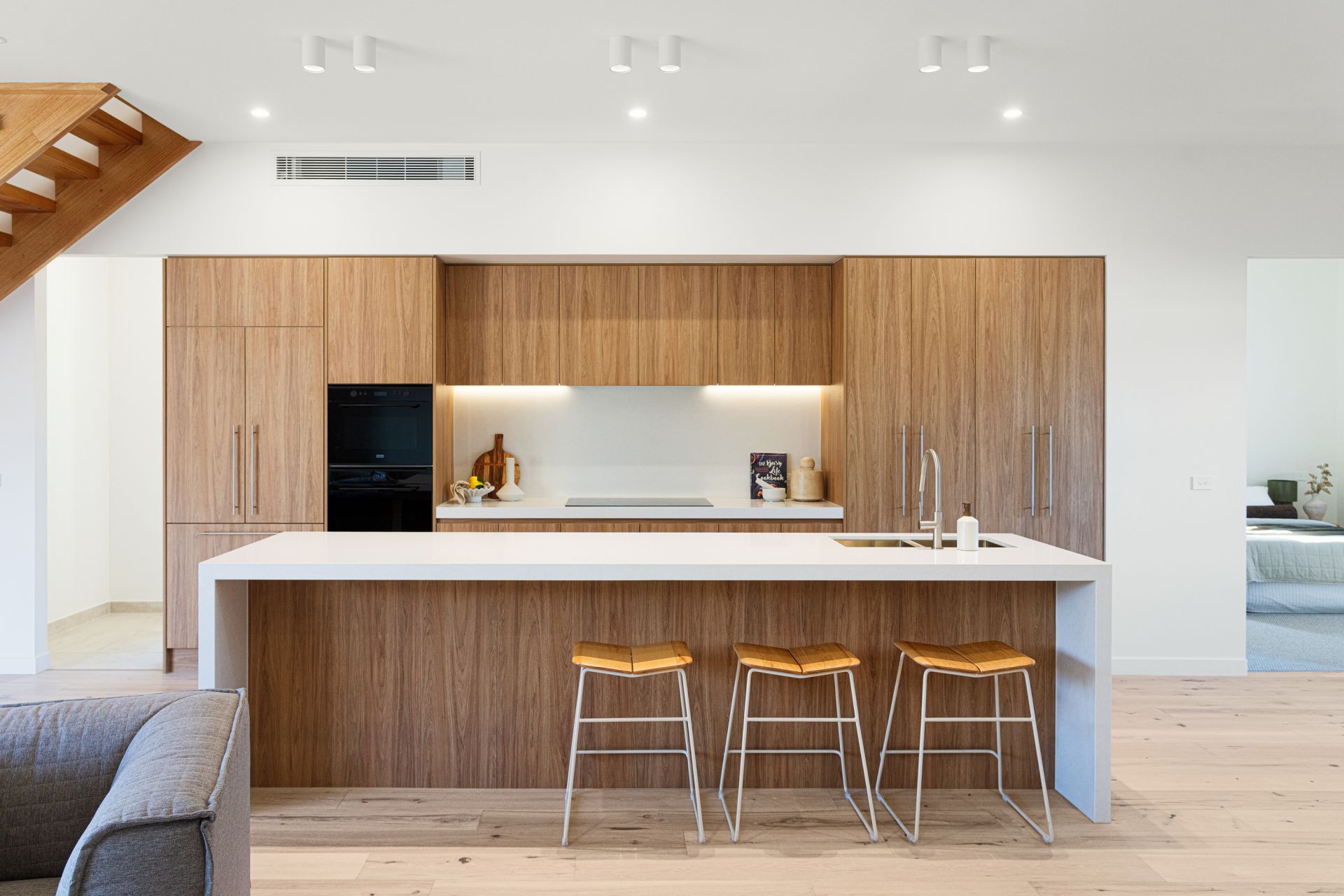 At the heart of the home, a sleek central kitchen connects to light-filled living spaces finished in soft neutral tones with a modern edge. These flow seamlessly outdoors to a heated pool, alfresco sundeck and entertaining area, the perfect setting for relaxed summer gatherings.