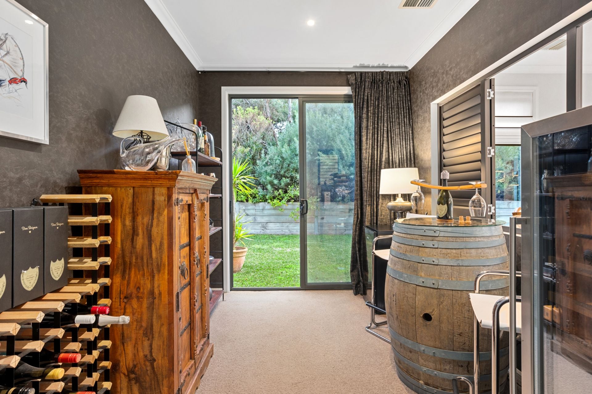 A sophisticated wine room, accessible from the main living area, adds convenience for elegant entertaining. Alternatively, it can be used as a study with terrace access, sealed off for privacy or opened to the view, offering versatility to suit your lifestyle needs.