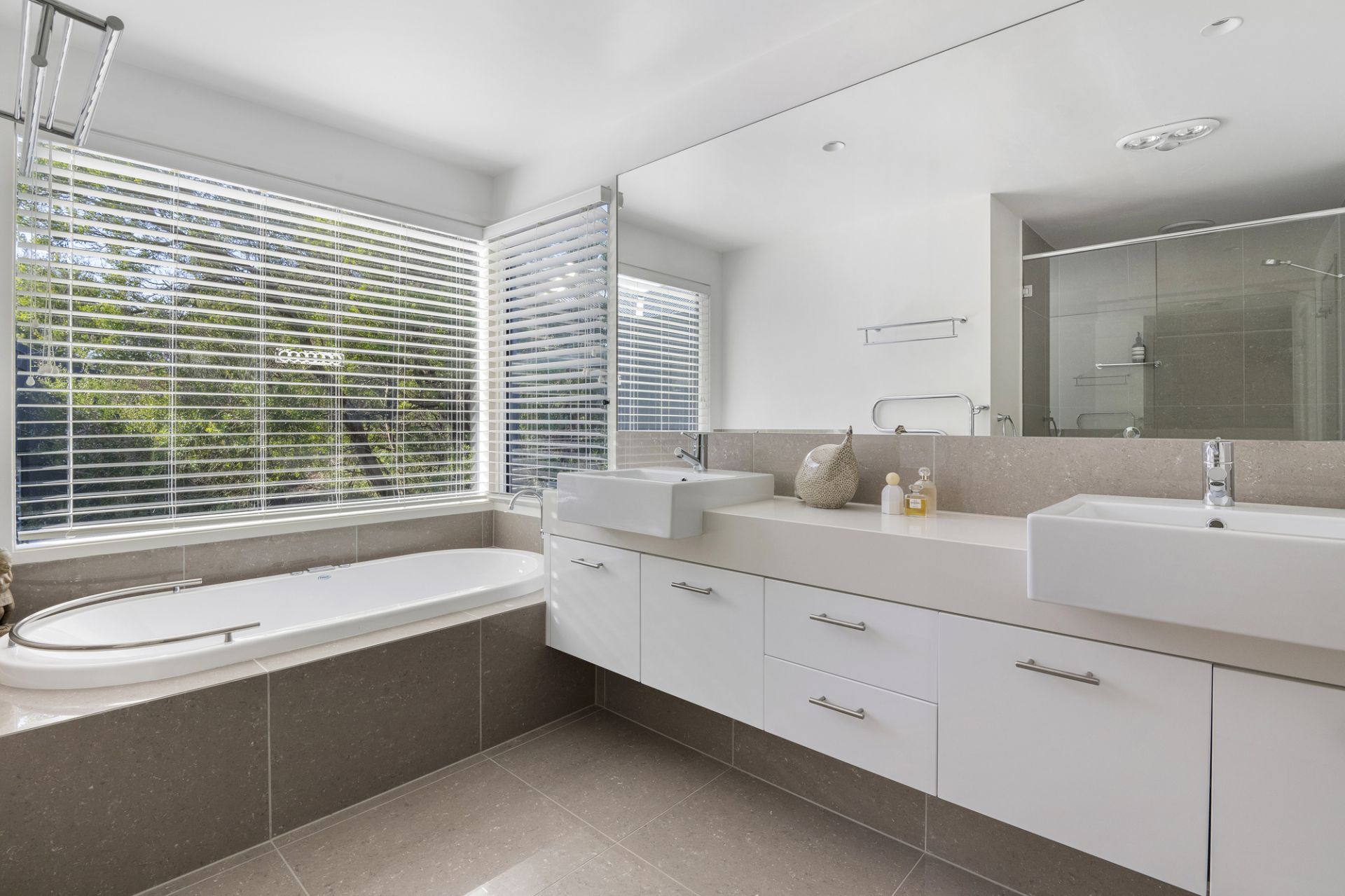The luxurious main suite is a haven of relaxation, with a deluxe dressing room and spa ensuite opening onto a vast deck overlooking the ocean. Each of the three additional bedrooms offers plenty of room for kids or guests, including a private ensuite bedroom boasting its own garden deck on the mid-level, supplemented by a lower-floor bathroom.