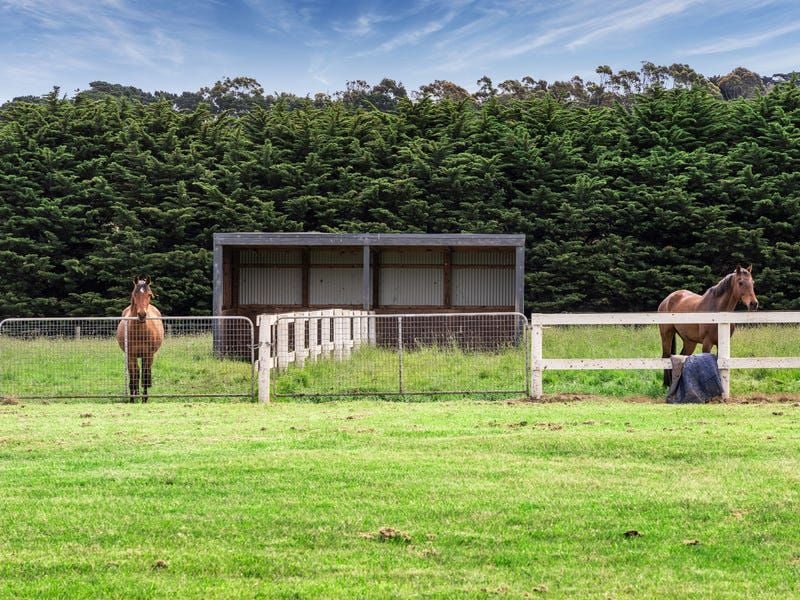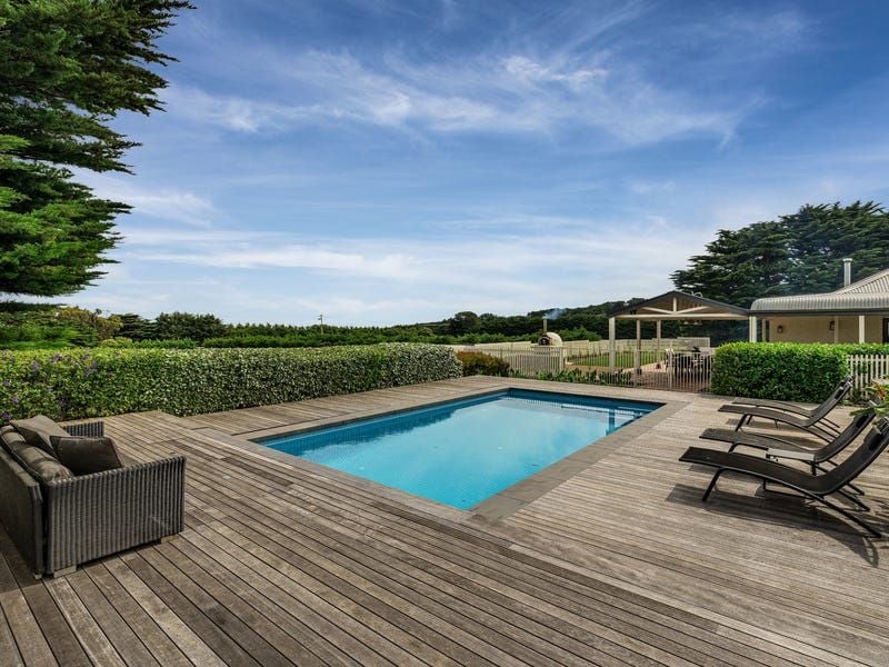 Curated as much for entertaining as for absolute serenity, the property's alfresco zones and amenities form a hub of family leisure, with an inground pool, a covered patio with strip heaters, a built-in BBQ and a pizza oven. Separate access from Boneo Road meanders beyond two paddocks with shelters to a 10.0 x 10.0m barn, edged by 3x 31,500L water tanks, a wash yard, feed room, tack room and machinery storage.
