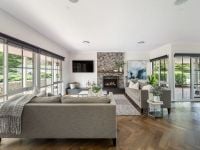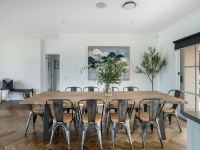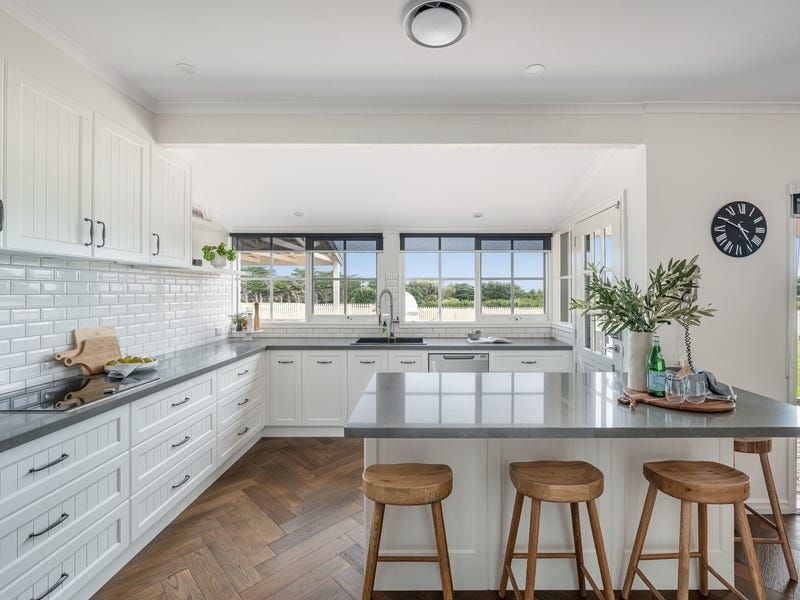 Elements of herringbone timber flooring, white bagged brick and wood heating create a soothing ambience, echoed throughout the home's cosy formal living and dining zones. A culmination of form and function, the central kitchen's Hampton's Vogue is accentuated with abundant natural light overlooking the property's entirety.