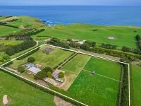 Escape from the everyday grind with this idyllic family getaway, presenting a compelling combination of rural sophistication and modern practicality on approximately 8 acres. Imbued with a refined style, its undeniable expression of space and amenity reflects its immediate surroundings, with the still tranquillity of the surrounding pasture framing fascinating ocean views.