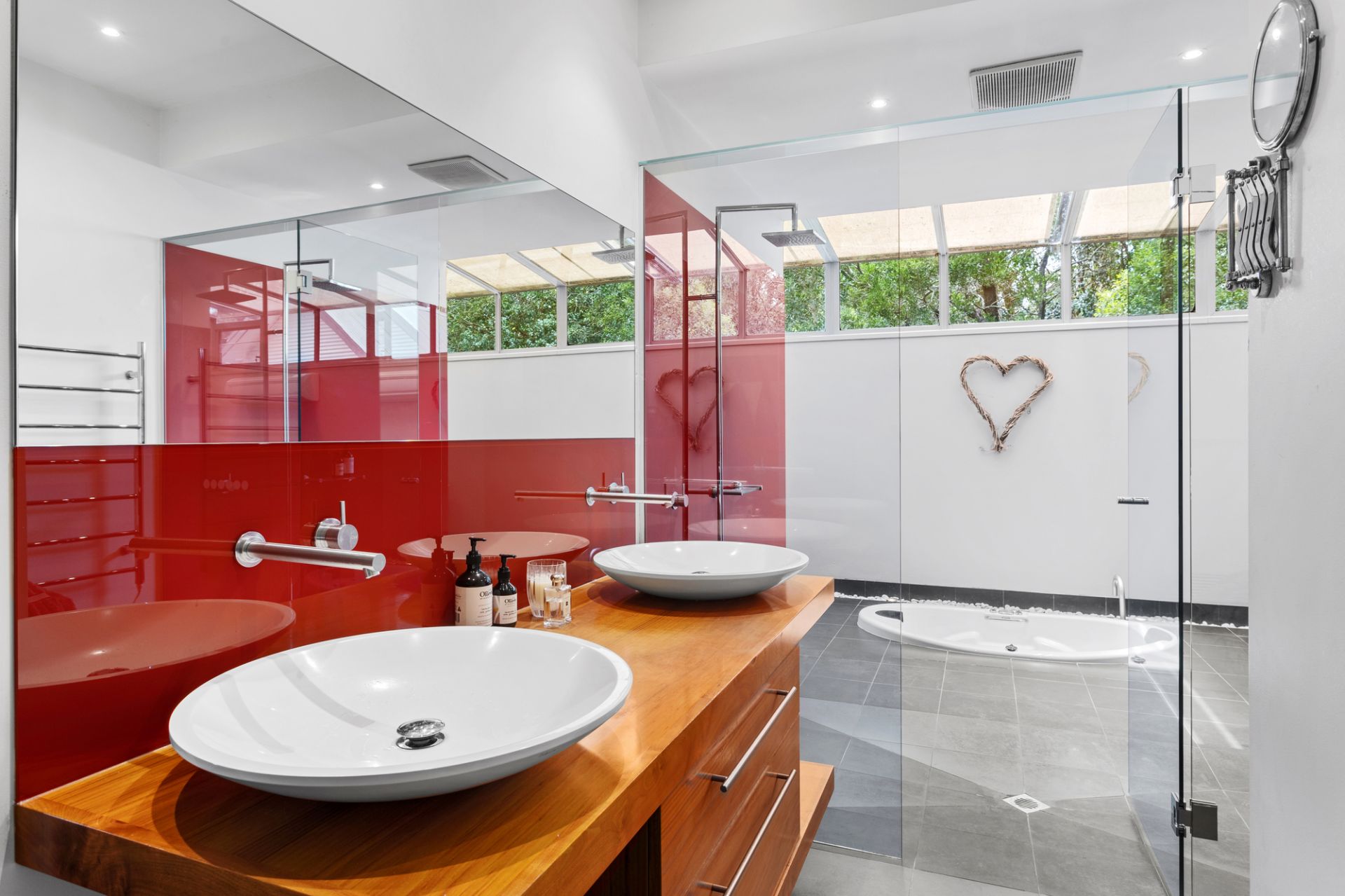 Beyond meticulously kept gardens and an ornamental grape-draped verandah, the home’s core design centres around the open-plan living, dining, and kitchen spaces, seamlessly integrated with the alfresco areas, which create an uninterrupted flow between indoors and out. Large windows and sliding doors offer direct access to the pool, spa, and lush gardens, while Miele appliances, dual island benches, and an entertainer’s floor plan make the kitchen the centrepiece of every celebration. The U-shaped layout promotes impeccable zoning and harmonious connections, with five spacious bedrooms, three stylish bathrooms, and a separate rumpus room with a kitchenette offering adaptable zones for relaxation and accommodation. The main suite is an oasis with an atrium-inspired ensuite, a walk-in robe, and a private parents’ retreat.