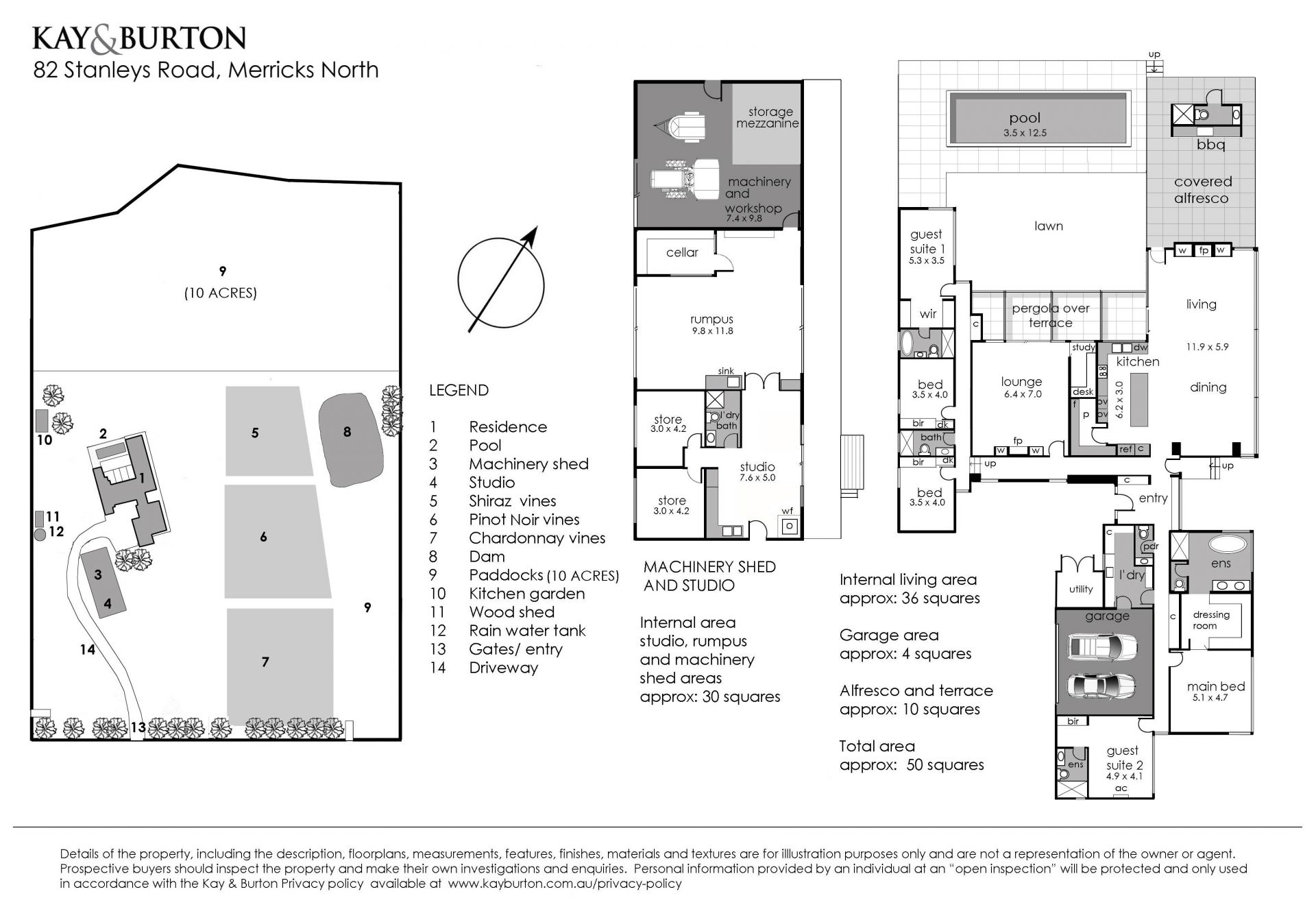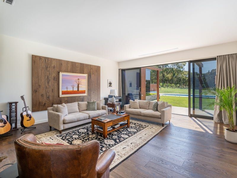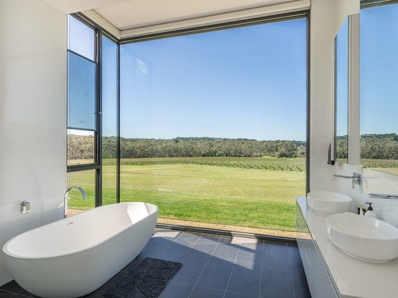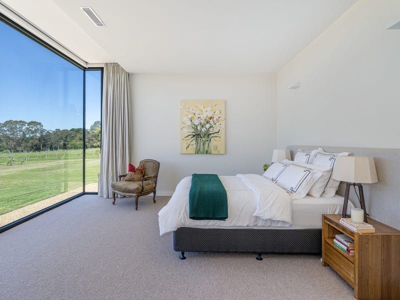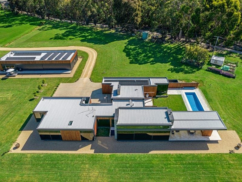 Five acres of stunning 4yo vines include Pinot Noir, Chardonnay and Shiraz and offer options to make wine, sell fruit or lease out. Additional enhancements include a 6-star energy rating, underfloor heating, refrigerated heating/cooling, a home office with Starlink satellite connection, electric window blinds, a poolside shower and powder room, a flourishing kitchen garden, 220,000L underground water storage, a cattle paddock, 3-phase power and an 18.6kw solar system.