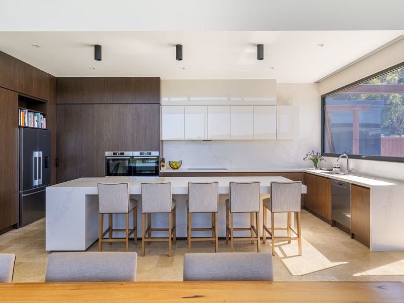 Liberating as it opens to the immense sky beyond the heavily-treed Stanleys Road, the bespoke residence has been markedly designed to capture the essence of its wondrous surroundings regardless of the vantage point. Natural swathes of French-laid Egyptian limestone, Yorkshire sandstone and richly-treated Silvertop Ash meld harmoniously with sophisticated stone benchtops, engineered Oak and astounding walls of 3.5m-high glazing, creating a 'window to the world' beyond.