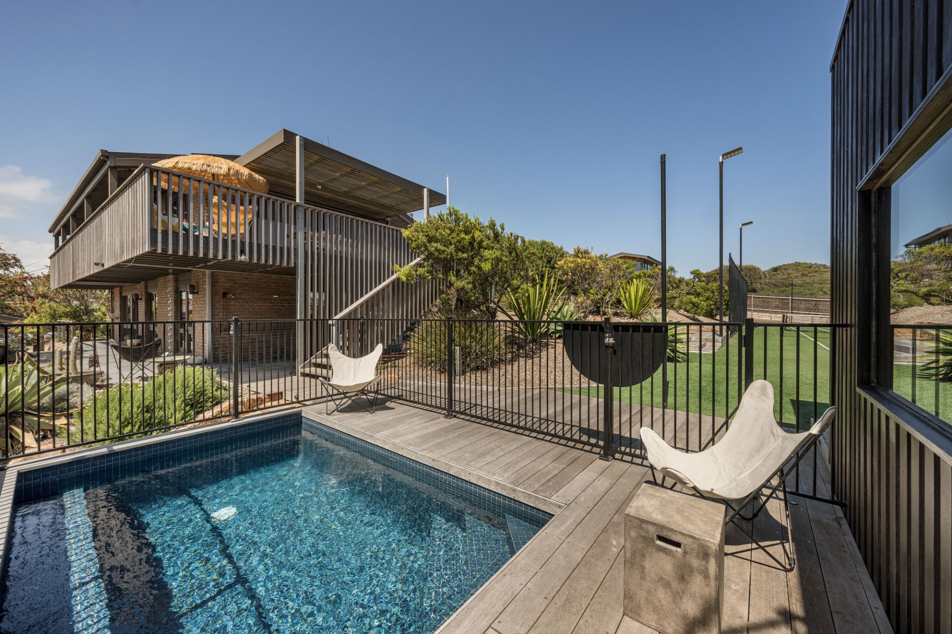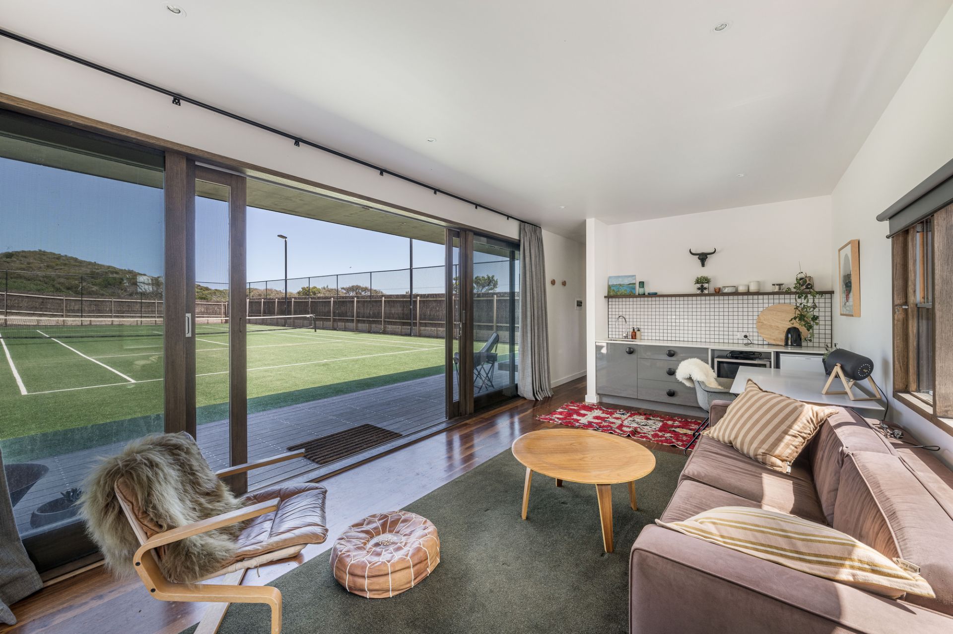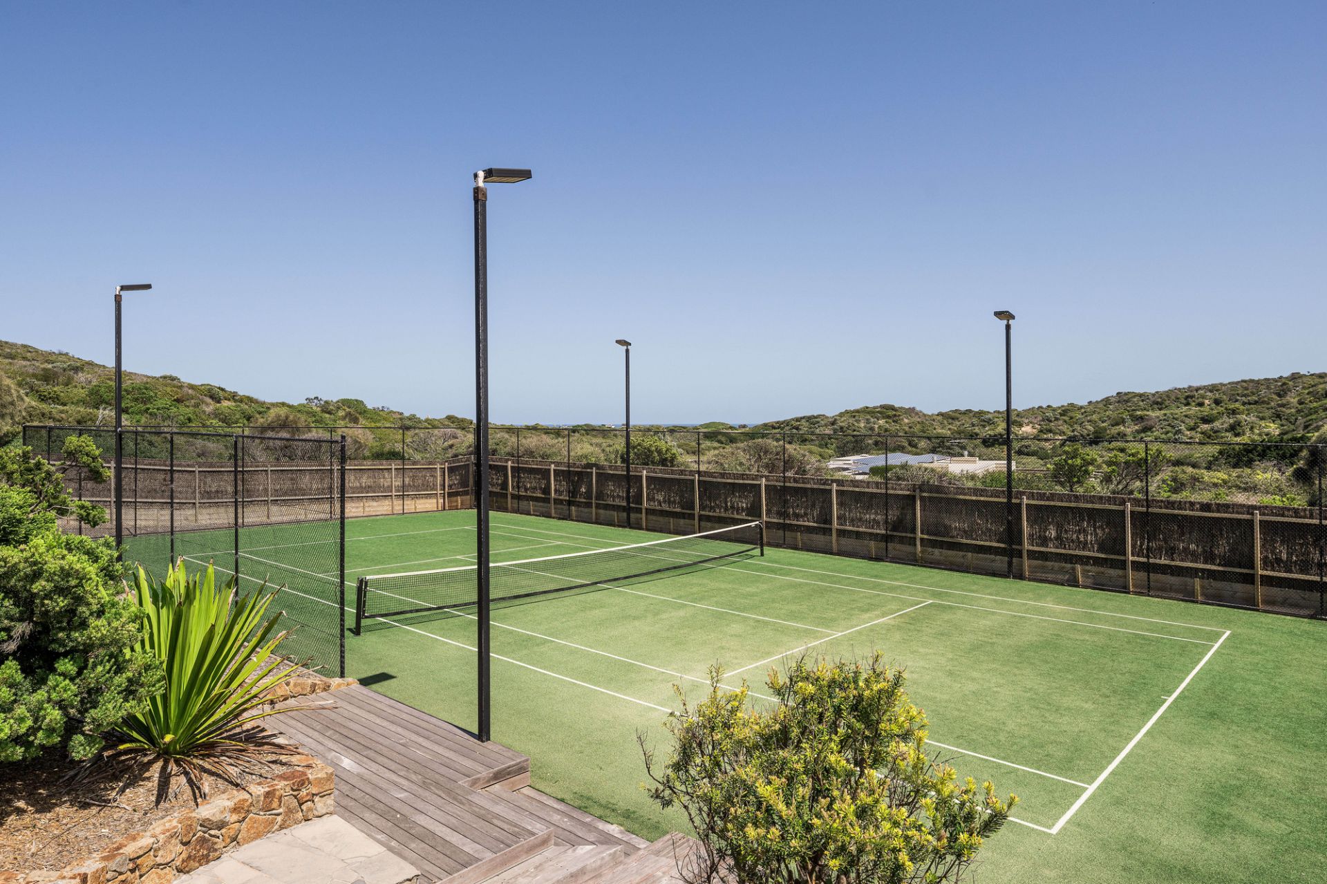 This Portsea Back Beach property with mod-grass tennis court and swimming pool is a hidden treasure positioned adjacent to the National Park, enjoying Bay and Ocean views, easy access to Portsea Surf Lifesaving Club and the beaches, the constant sound of surf, nightly sunsets and an amazing "laid back" atmosphere inviting the visitor to cast away cares and indulge in a lazy stay.