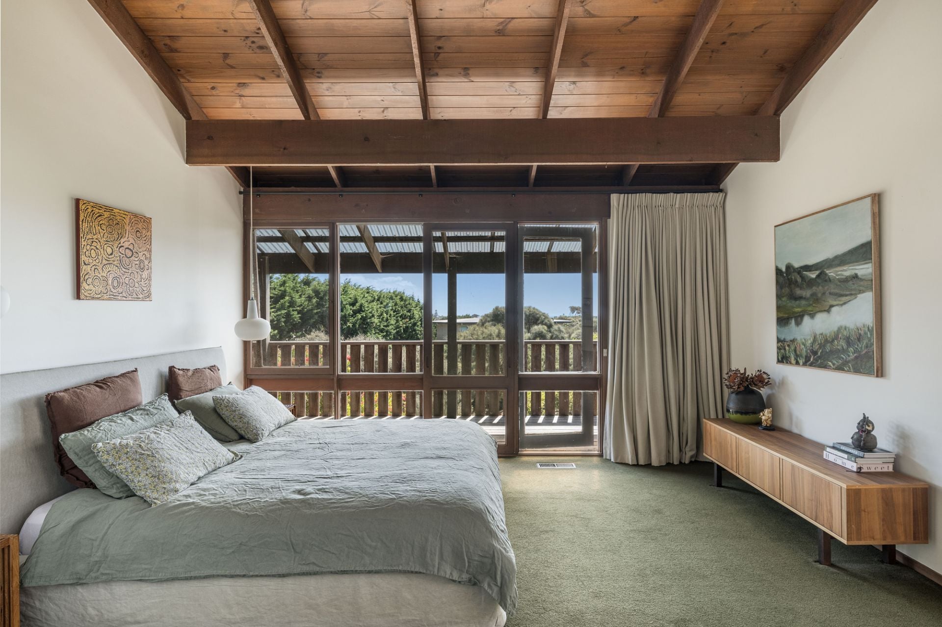 Sun-drenched northern views take in passing ships, Sorrento-Queenscliff ferries and on clear evenings the Melbourne city skyline lights up.