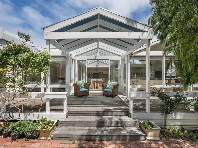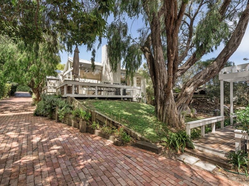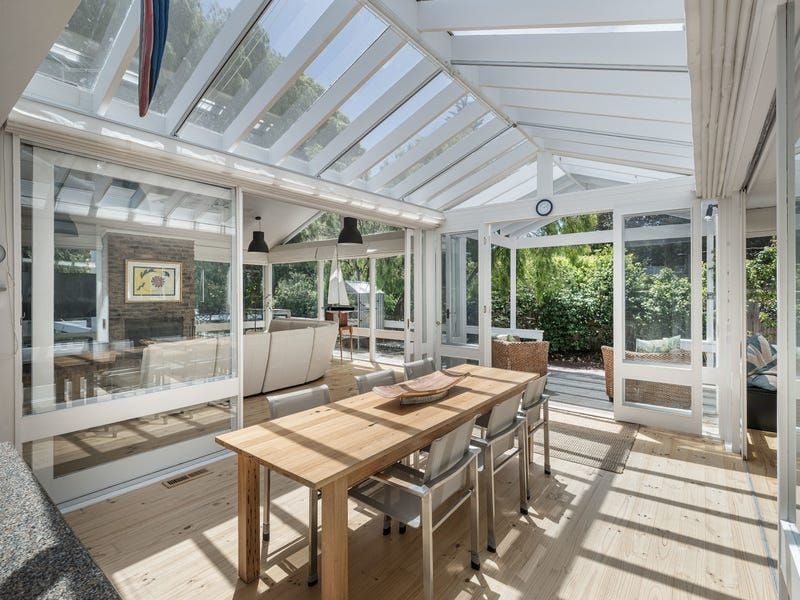 This distinctly classical Portsea home or holiday retreat, is a testament to its enduring, refined simplicity. Bursting with an abundance of functional family and guest accommodation, perfectly presented, comprising a magnificent soaring, light-filled glass atrium style roof which anchors dining, kitchen, living, lounging, bar and entertaining spaces, all opening to traditional generous north facing sundecks, this is paradise, set in beautifully private, established natural garden surroundings.